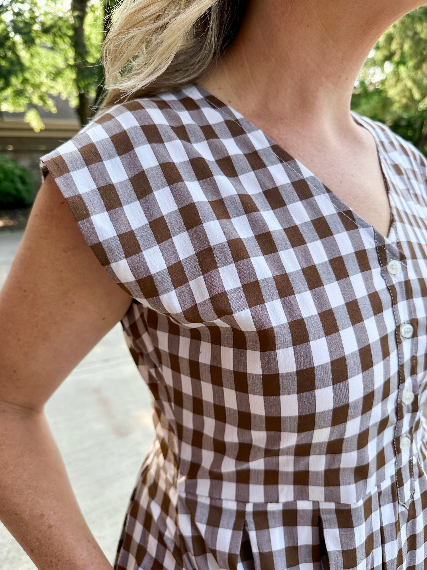 - Red Gingham worn by Maggie Size S, Pine worn by Kelli size XL & Hanna size S, Brown Gingham worn by Kelly size M