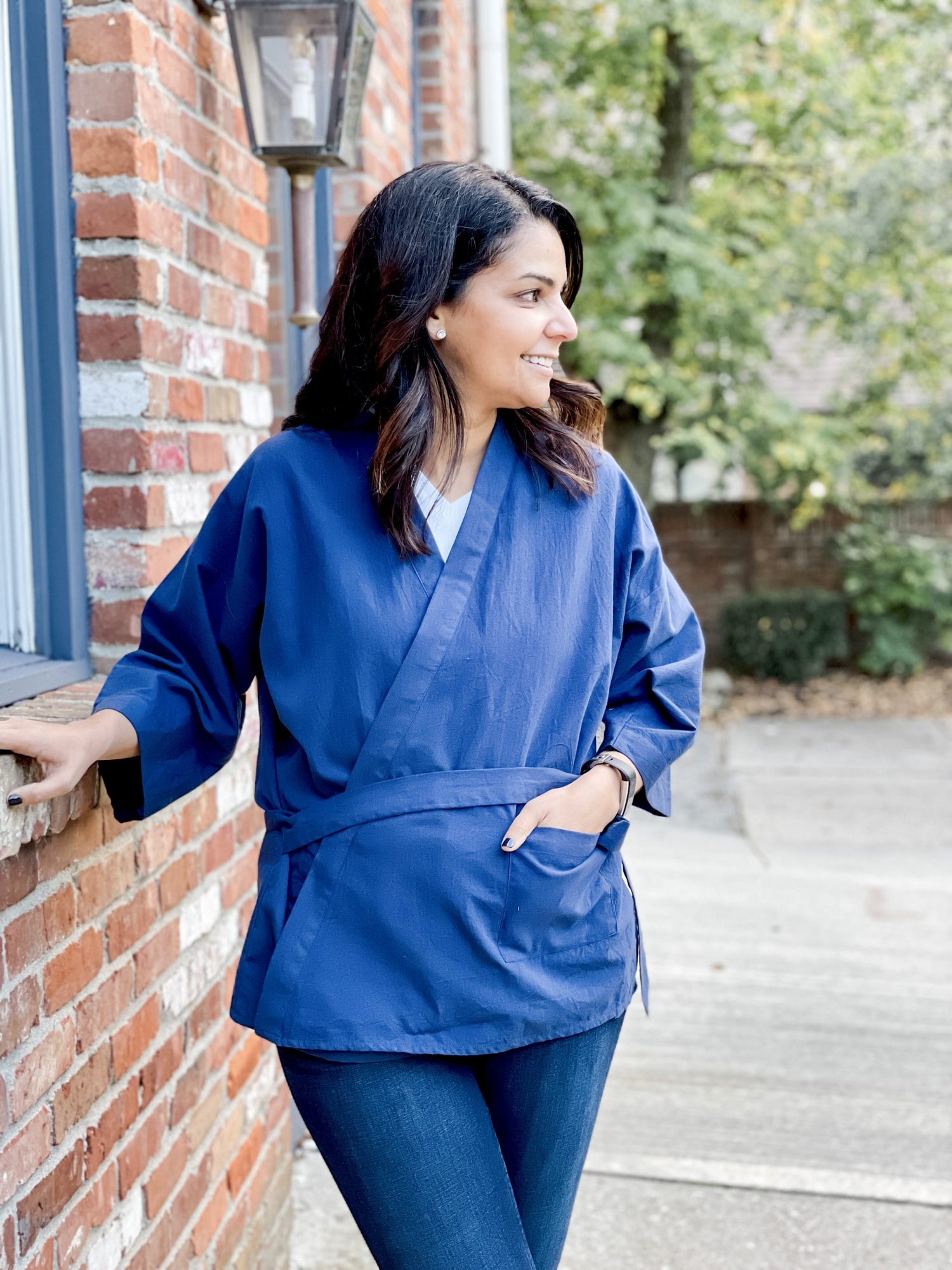 cross-wrap tied for a fitted jacket look