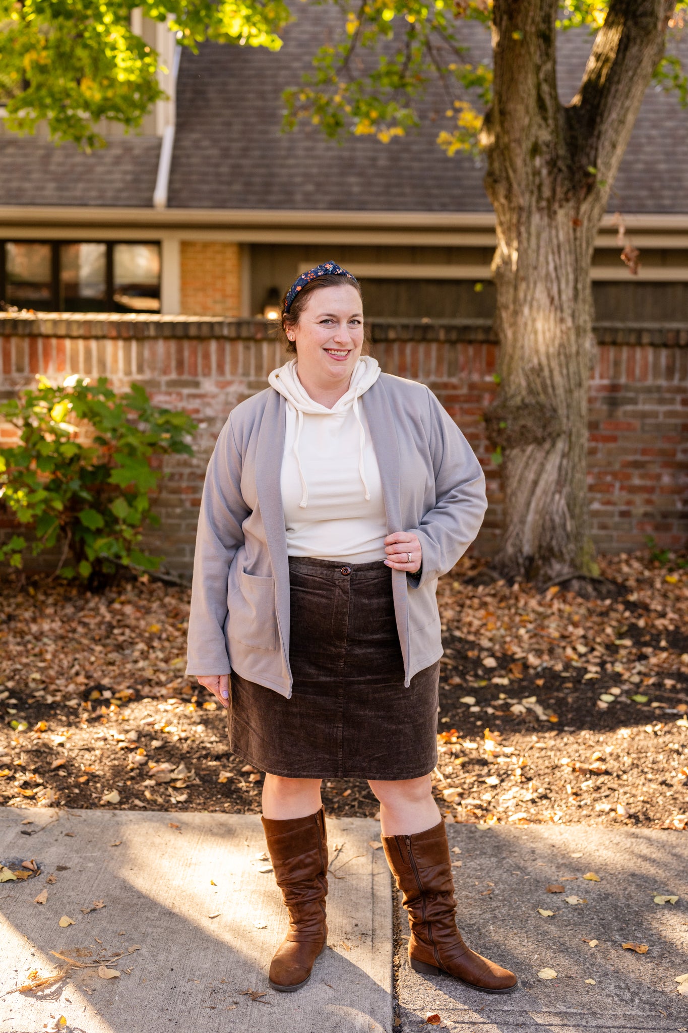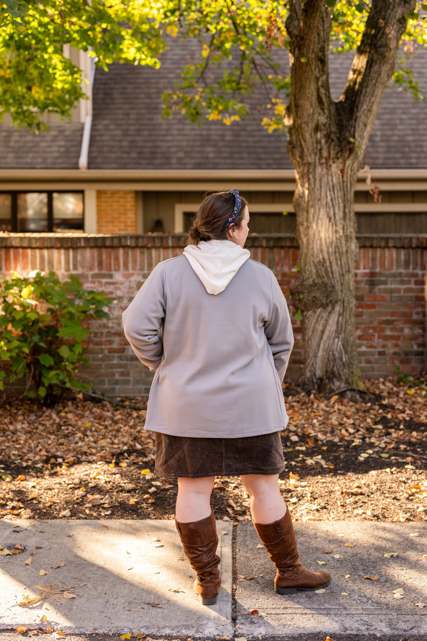 Maggie in Carolina Blue wearing typical size S & Rachel in Classic Gray wearing typical size 1X