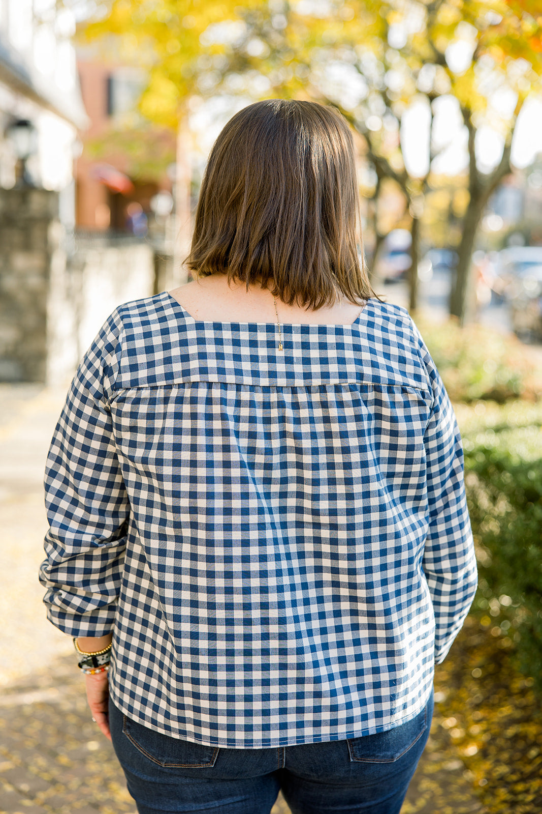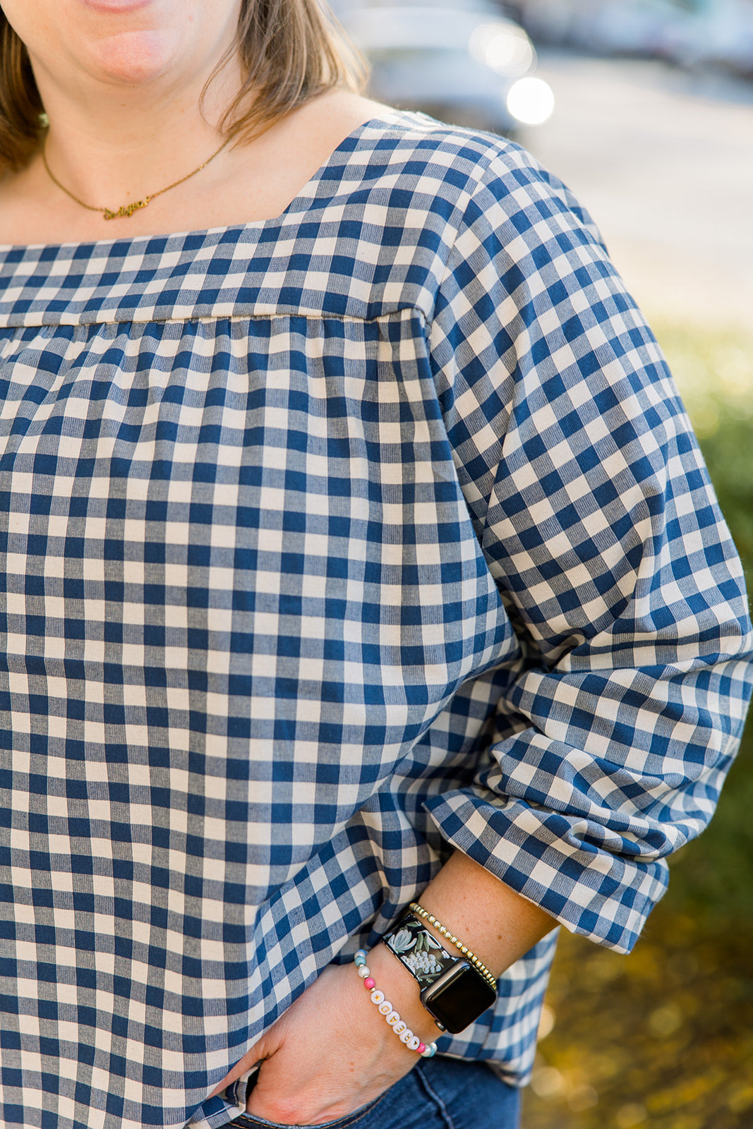 Fit recommendations: We recommend choosing your typical size in a top. There is no stretch to the woven material.