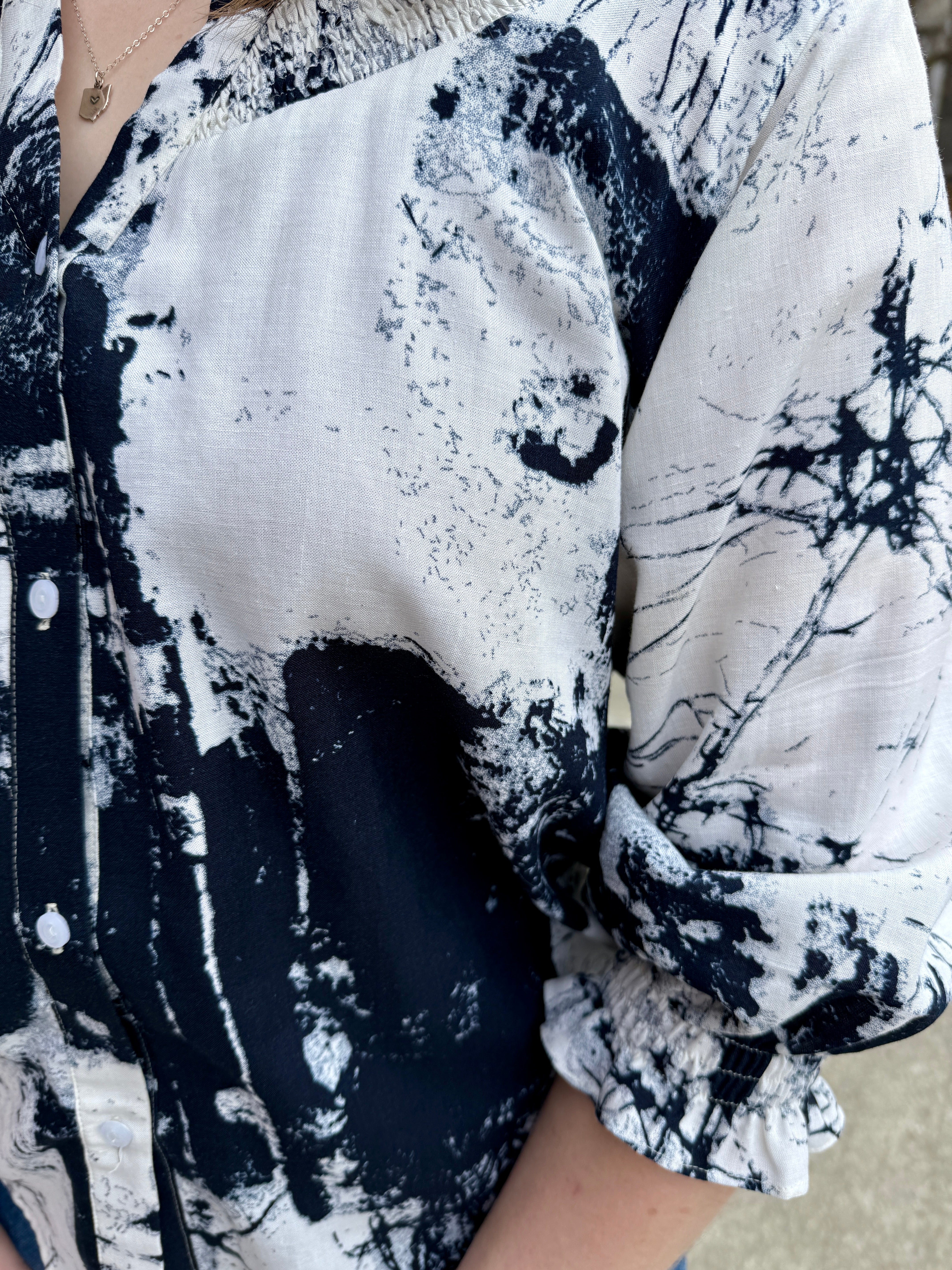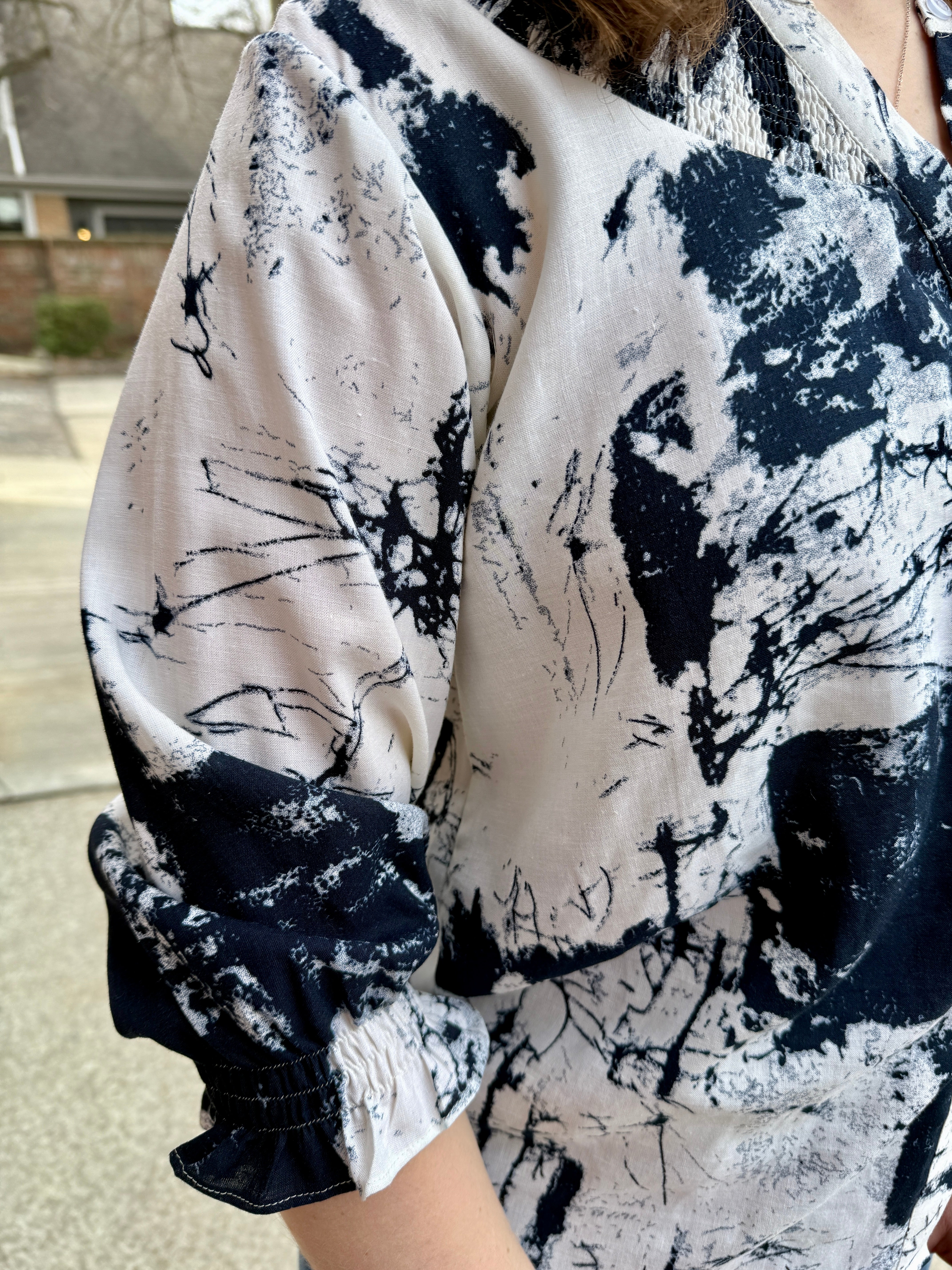 - ¾ sleeves with smocked cuffs