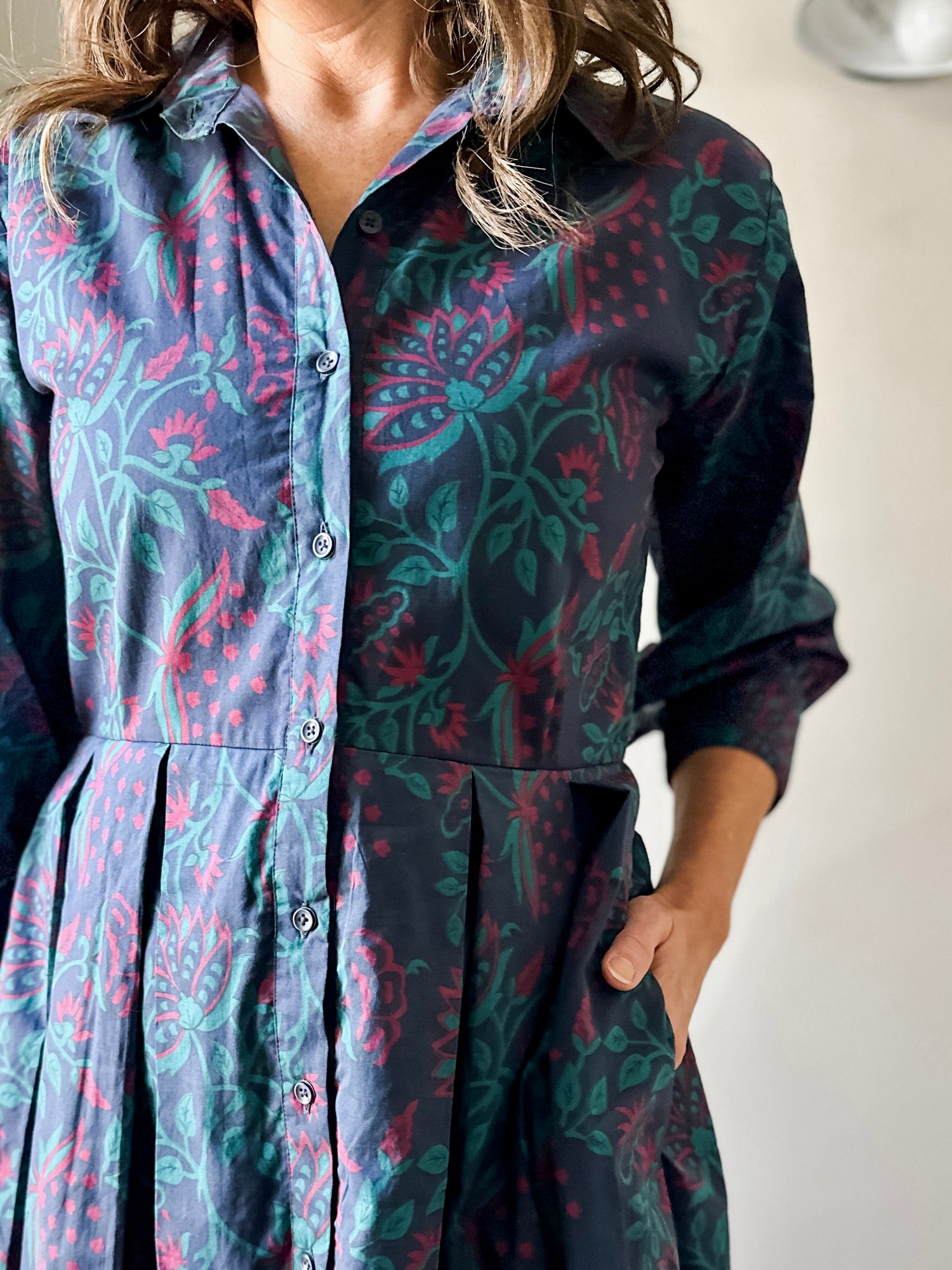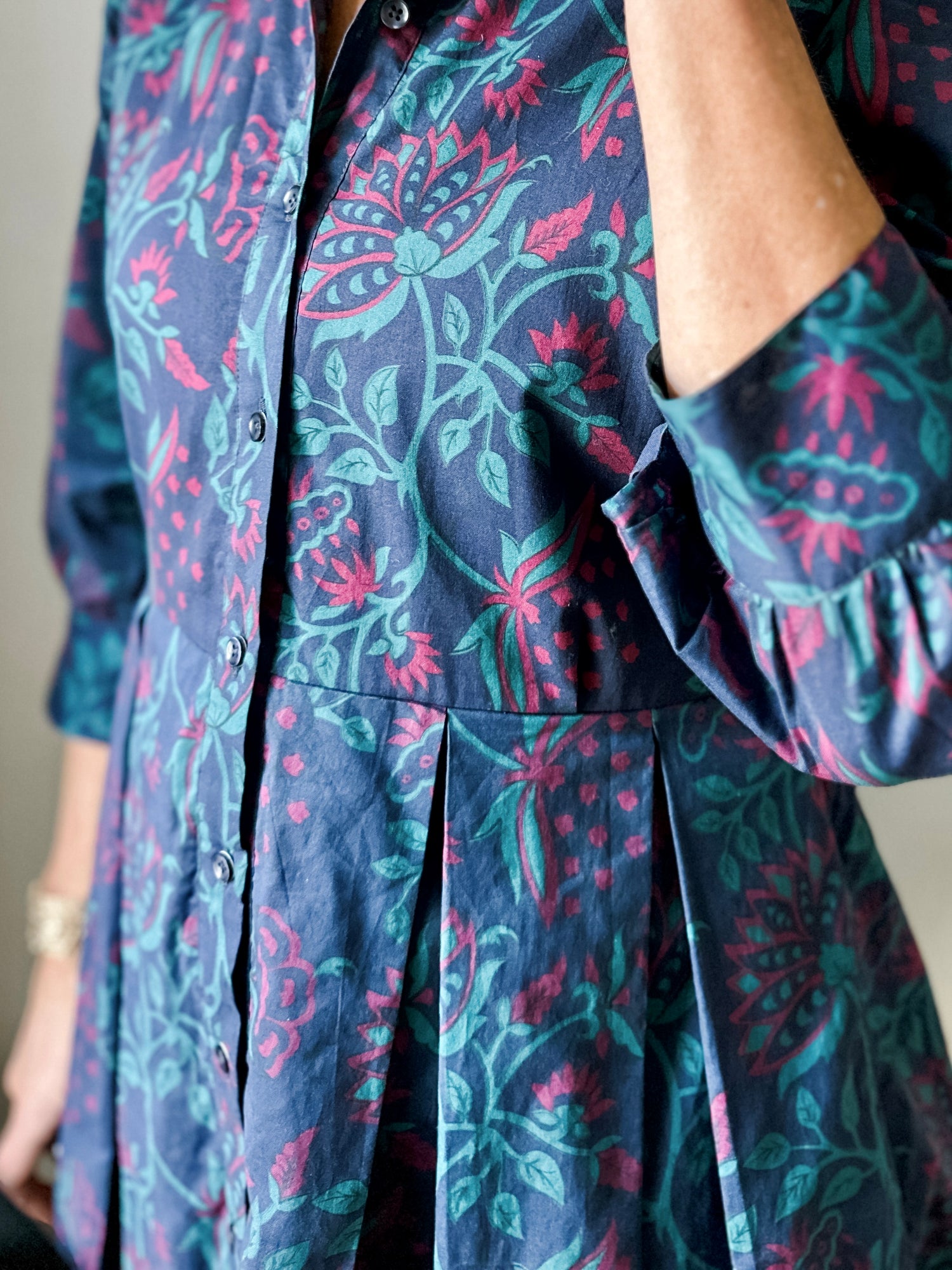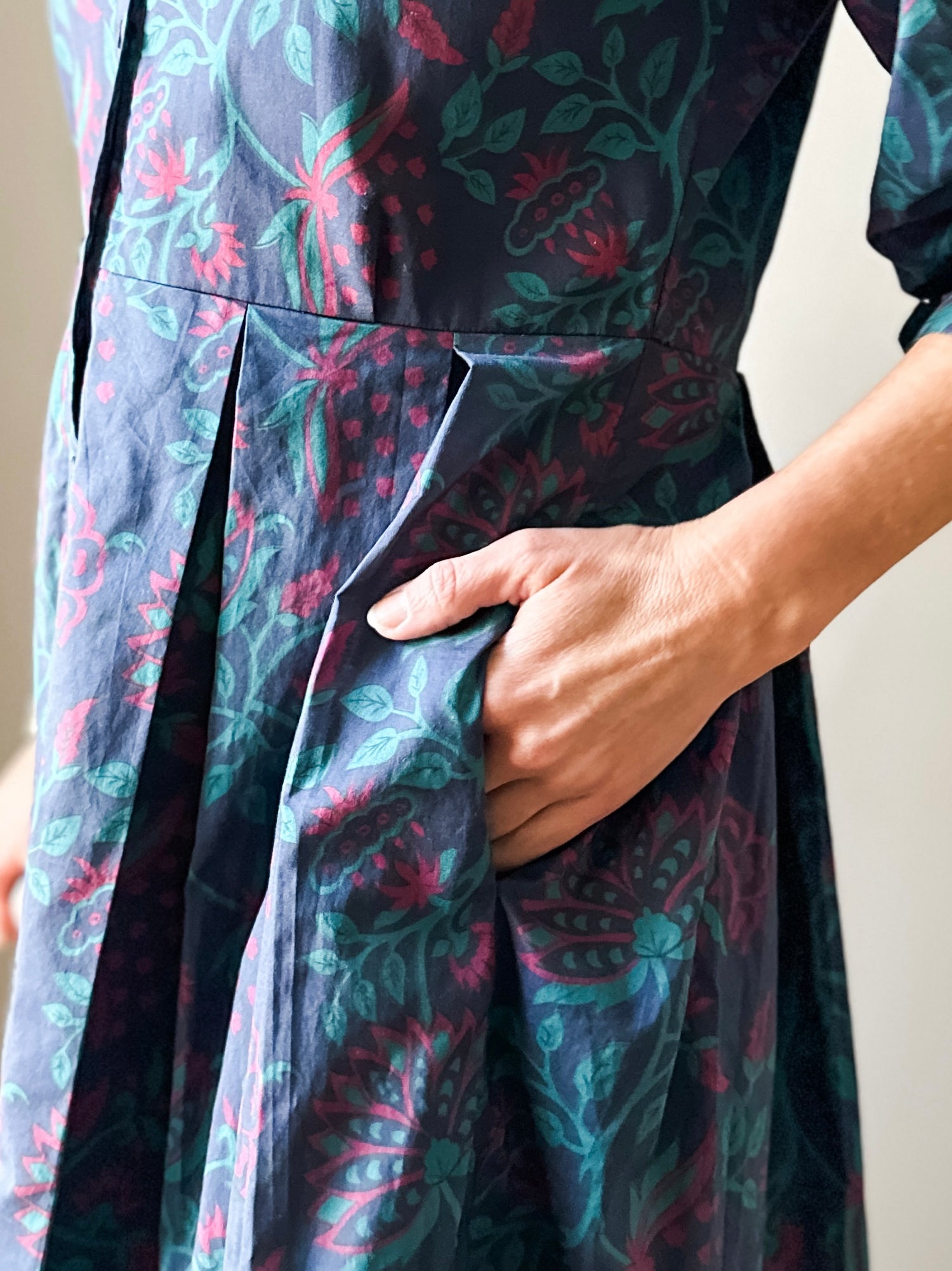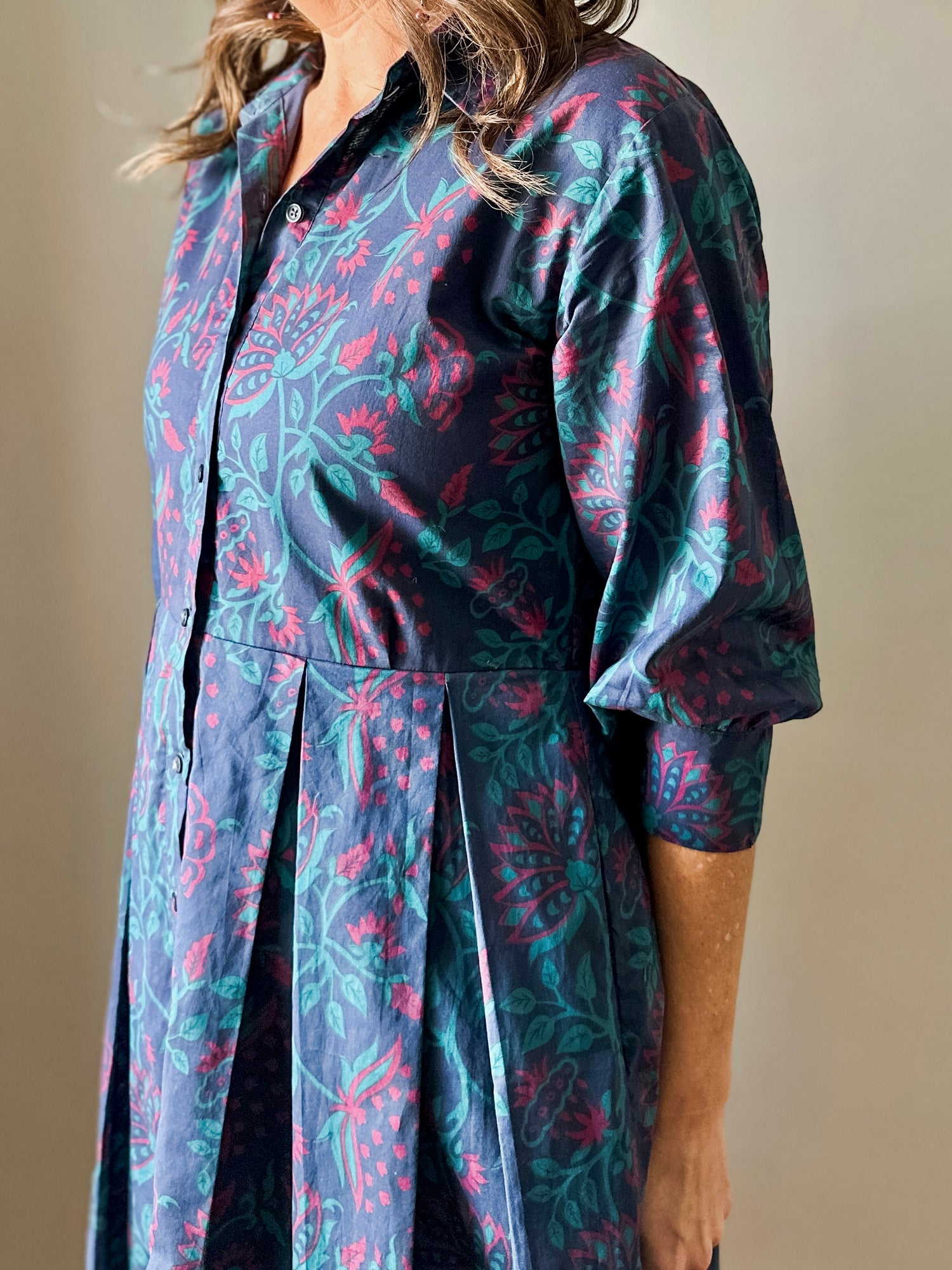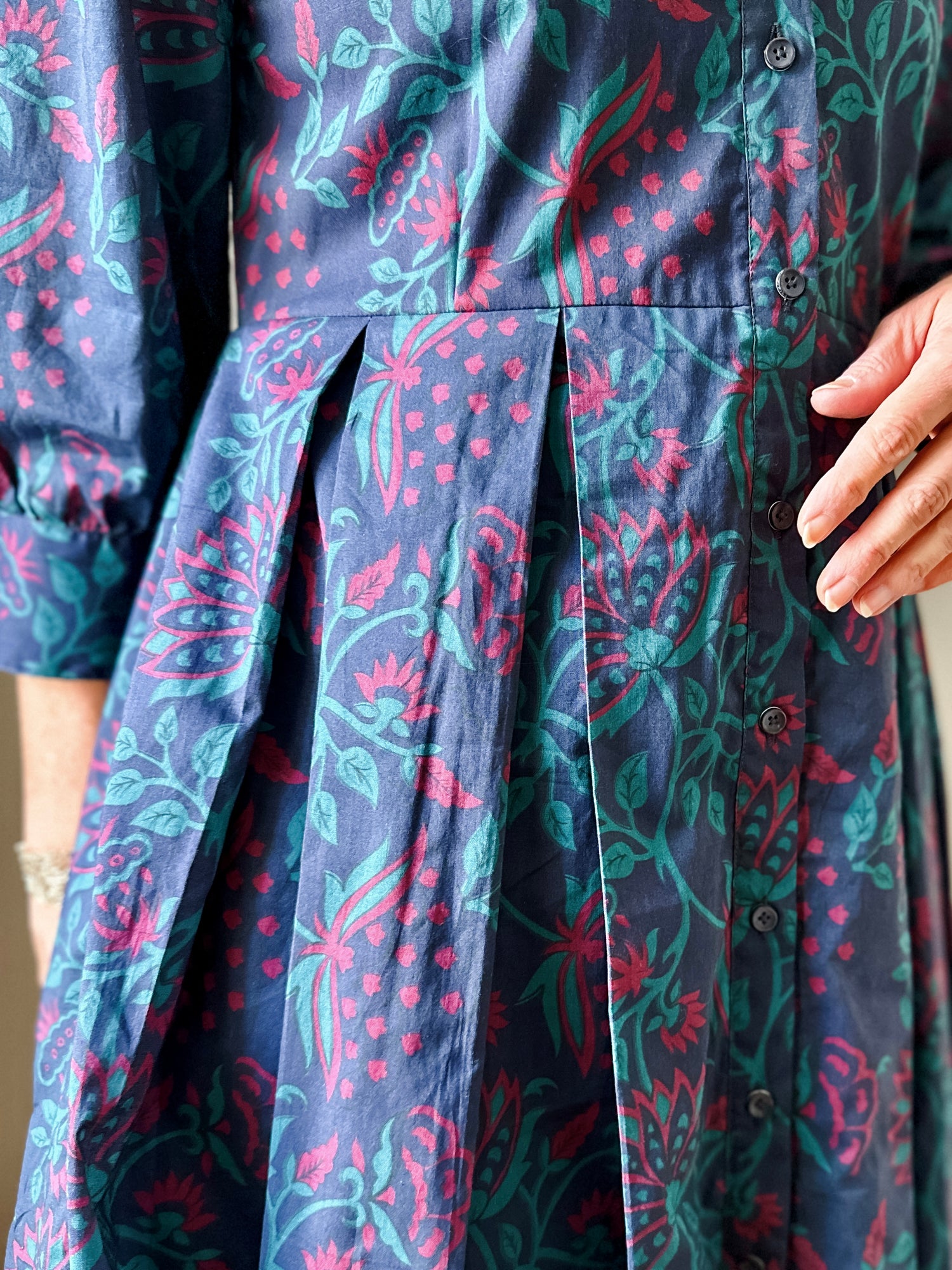 - Wide Box Pleating Detail on the skirt portion of the dress