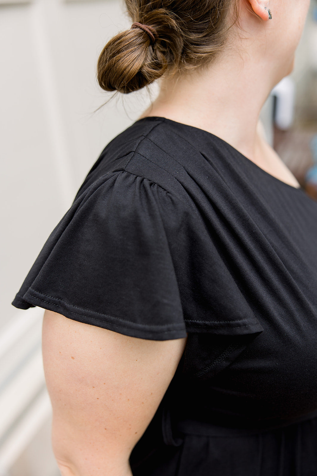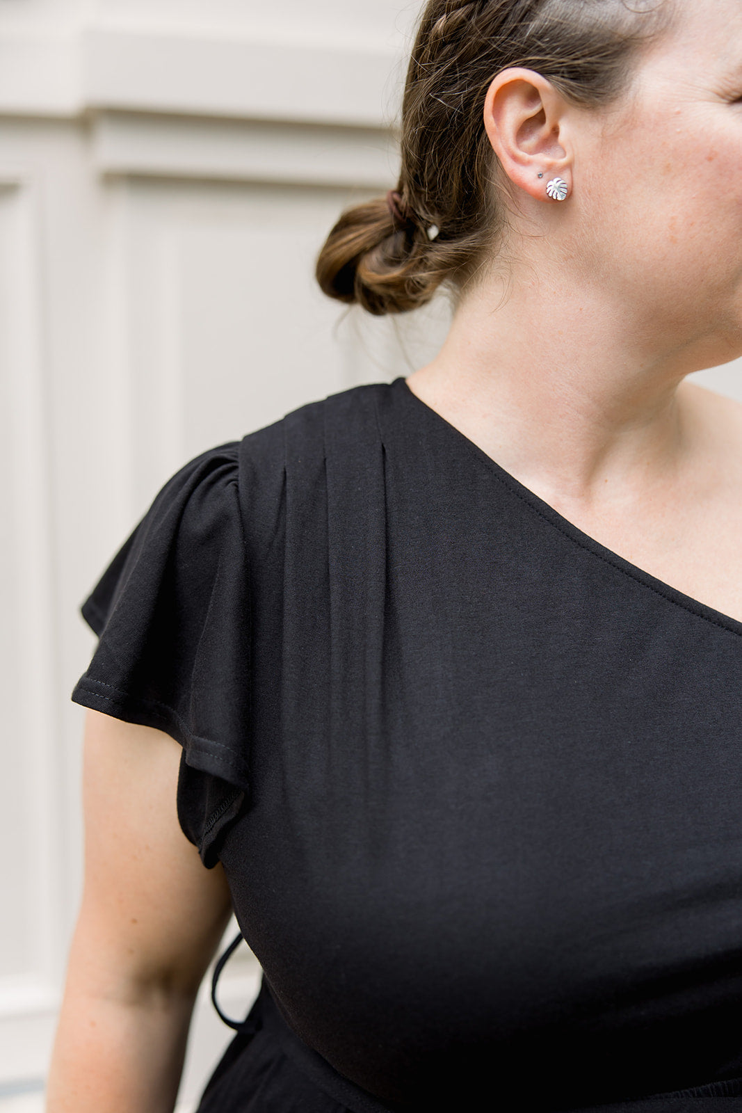 • One-Shoulder with flowy flutter sleeve & Pleating detail
