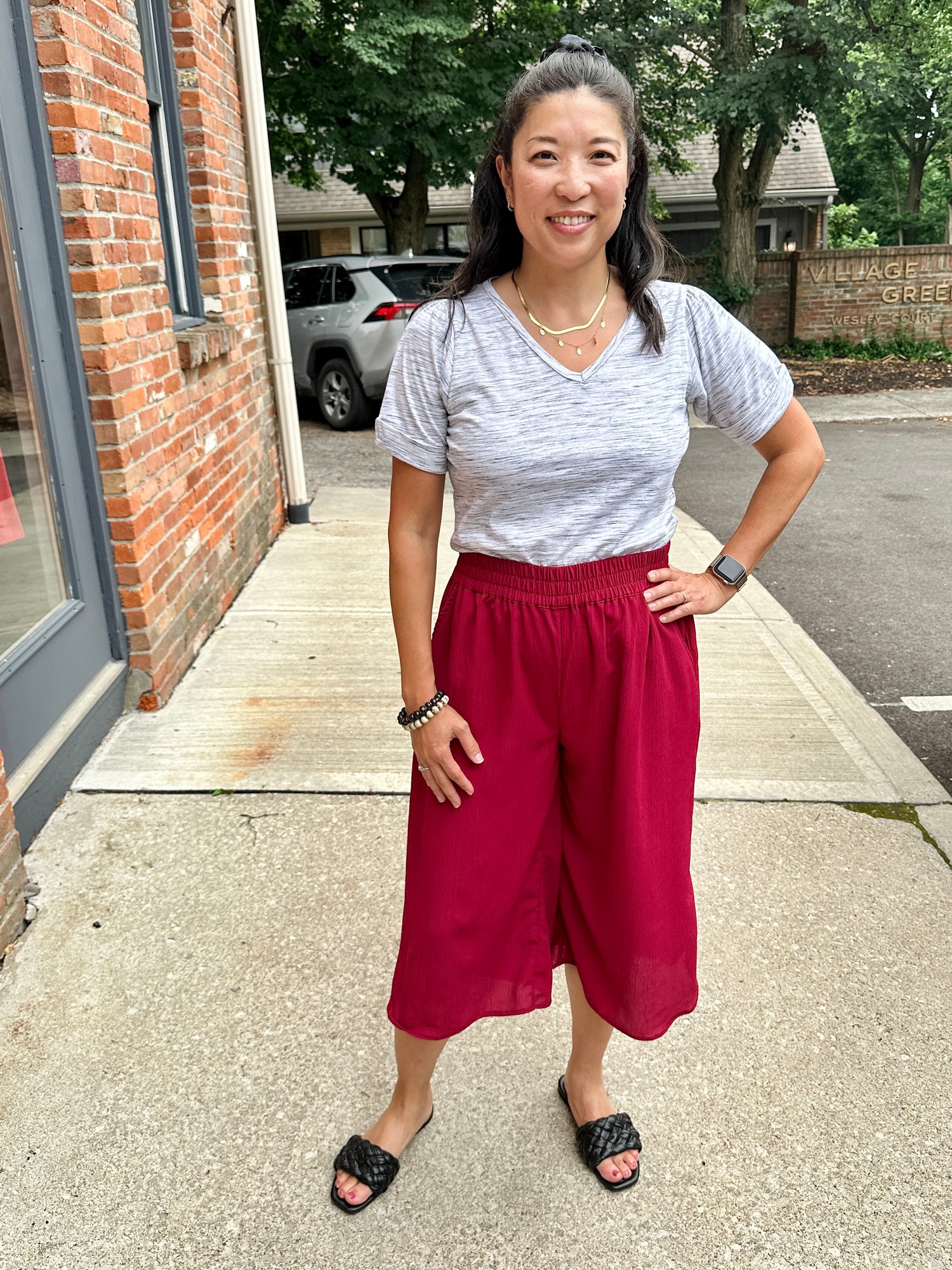 Navy worn by Madi size XS & Kelly size M | Cranberry worn by Donna size S & Kacie size 1X | Forest Green worn by Maggie size M & Rachel size 1X