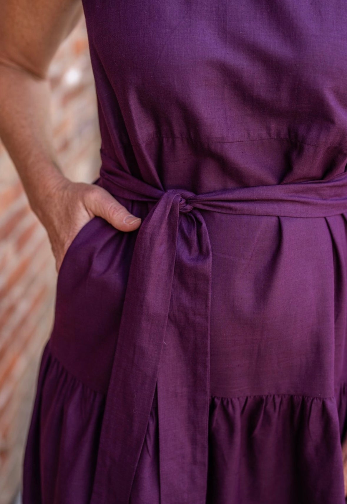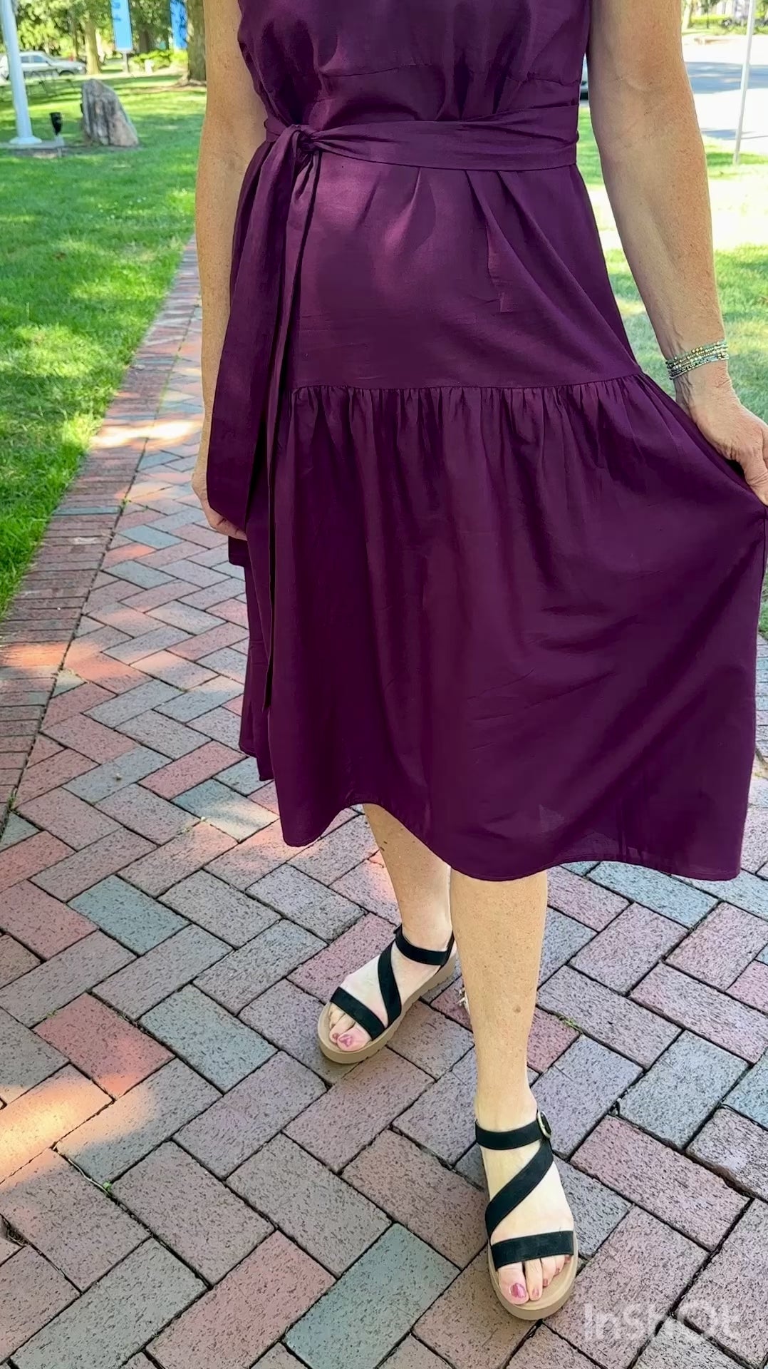 - Includes matching belt and hidden side pockets