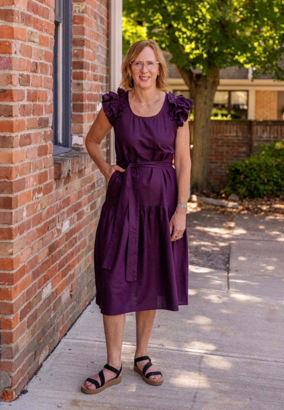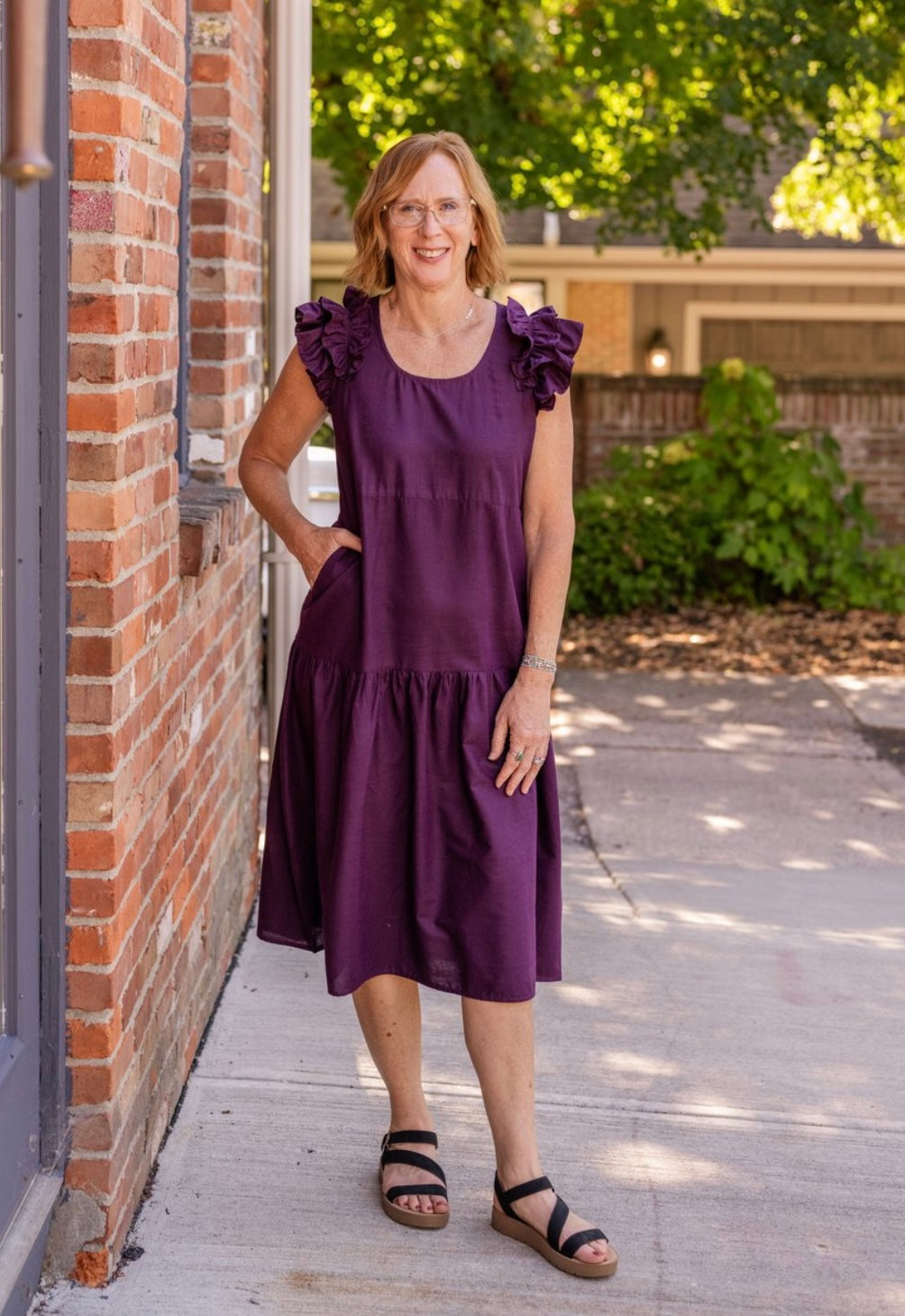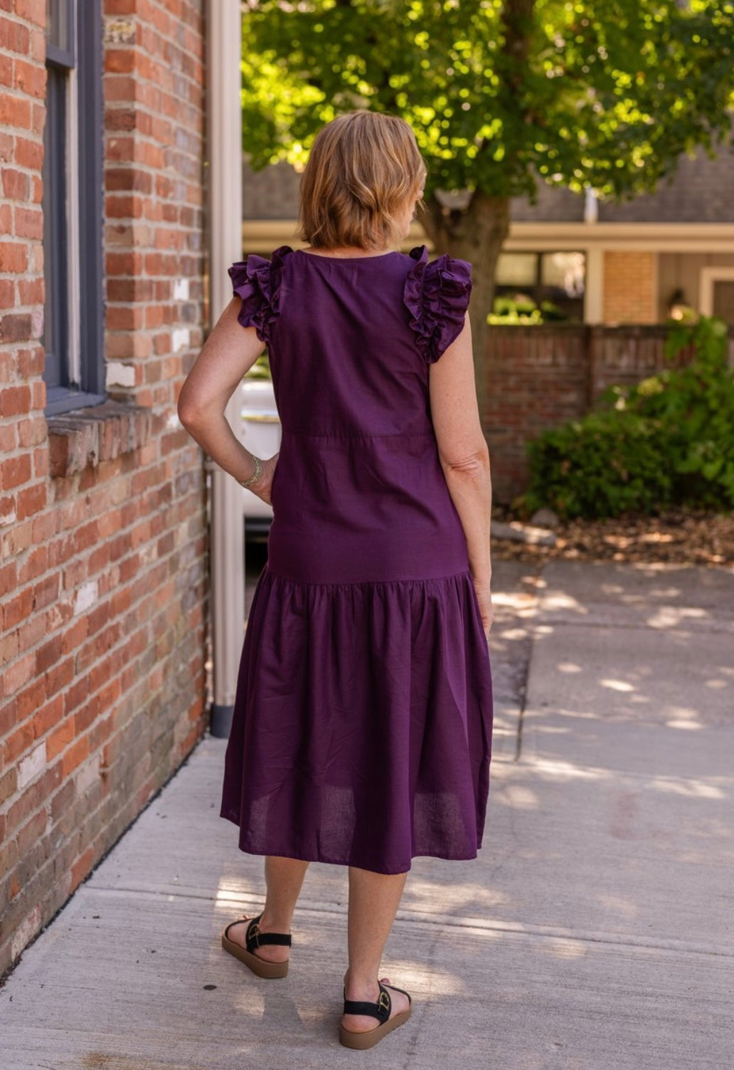 Elevate your style with the Penelope Dress, featuring a charming 3-tiered design with cascading ruffle shoulders and a flattering drop waist. This versatile A-line dress pairs beautifully with sandals or heels for any occasion.