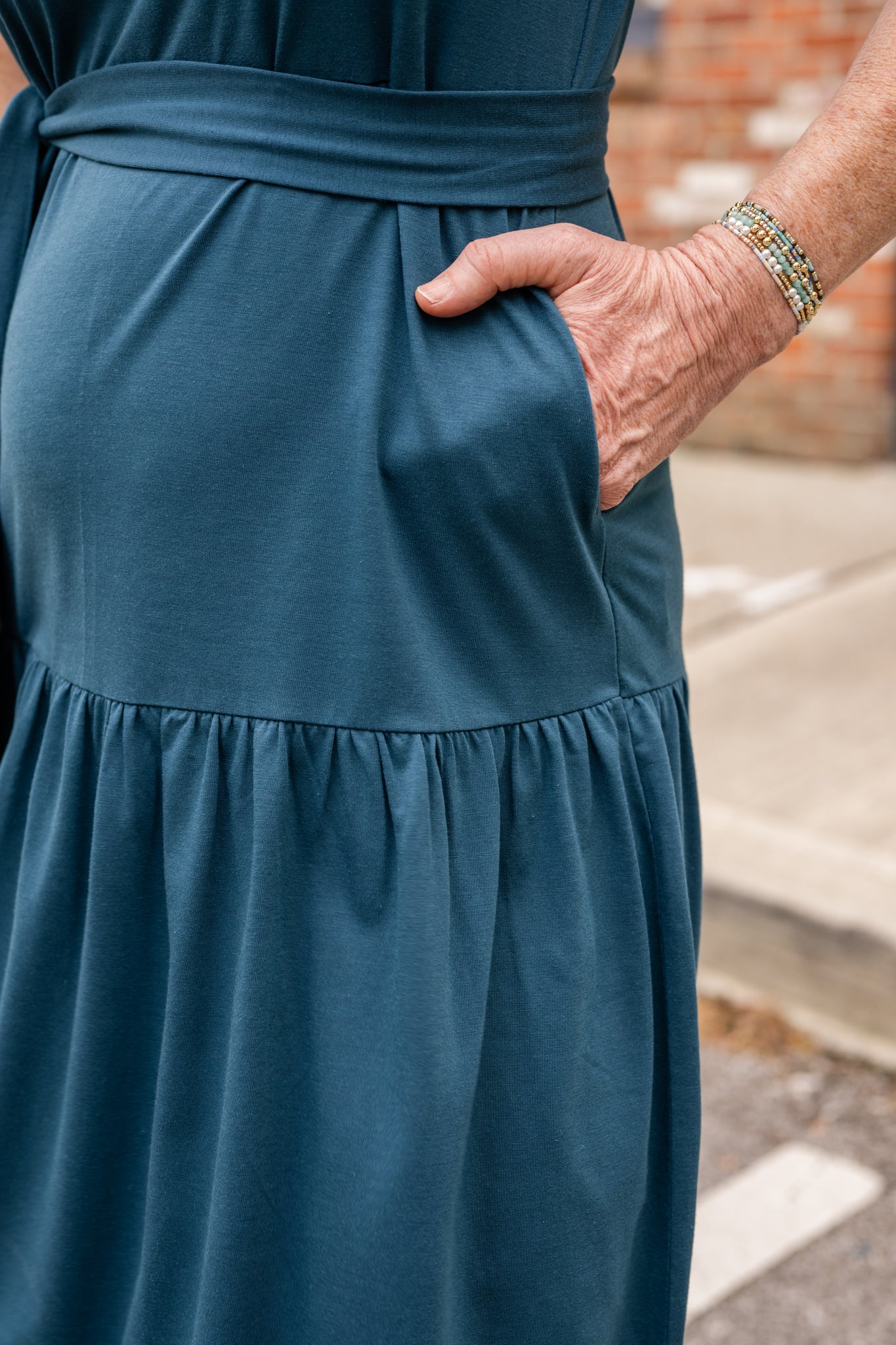 • Matching belt and hidden side pockets