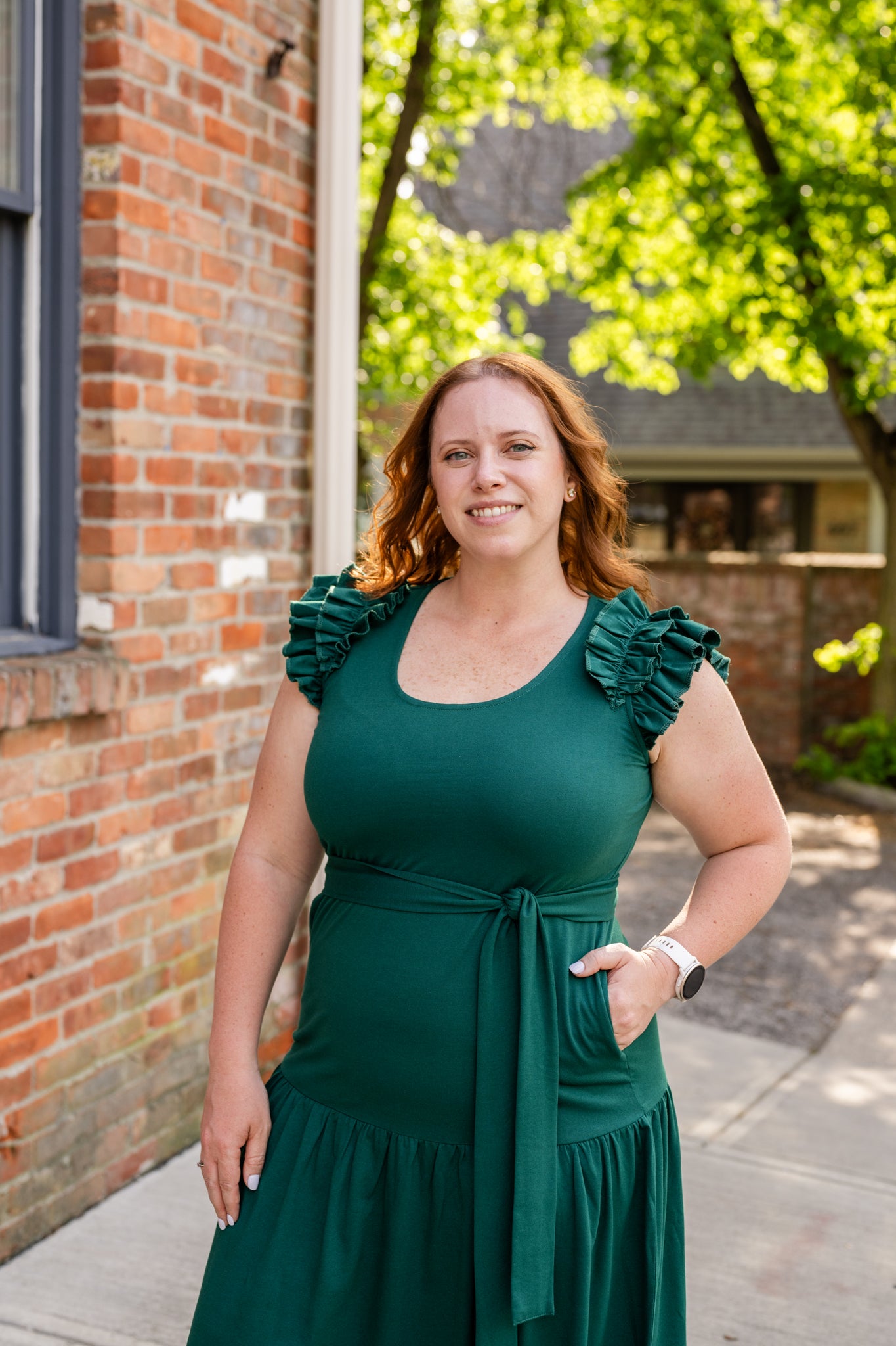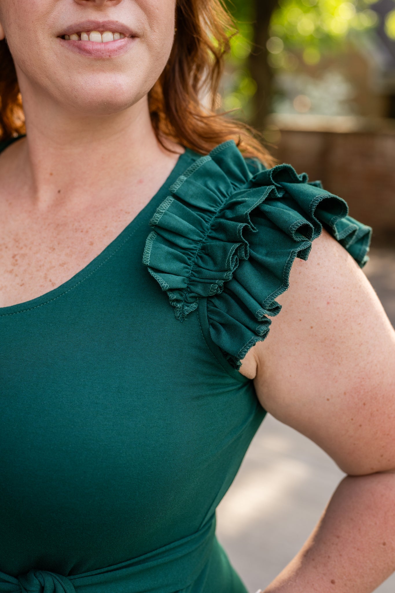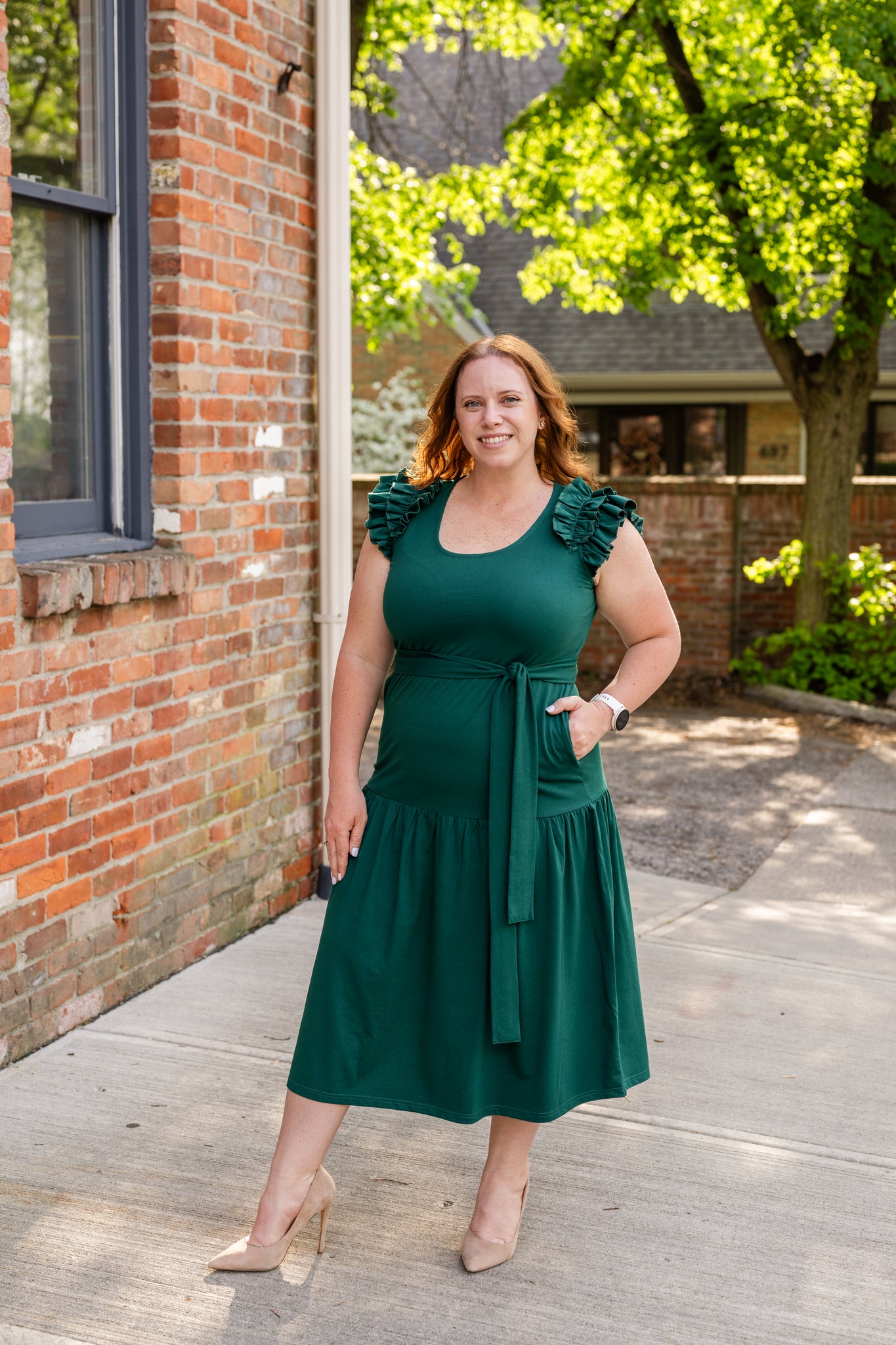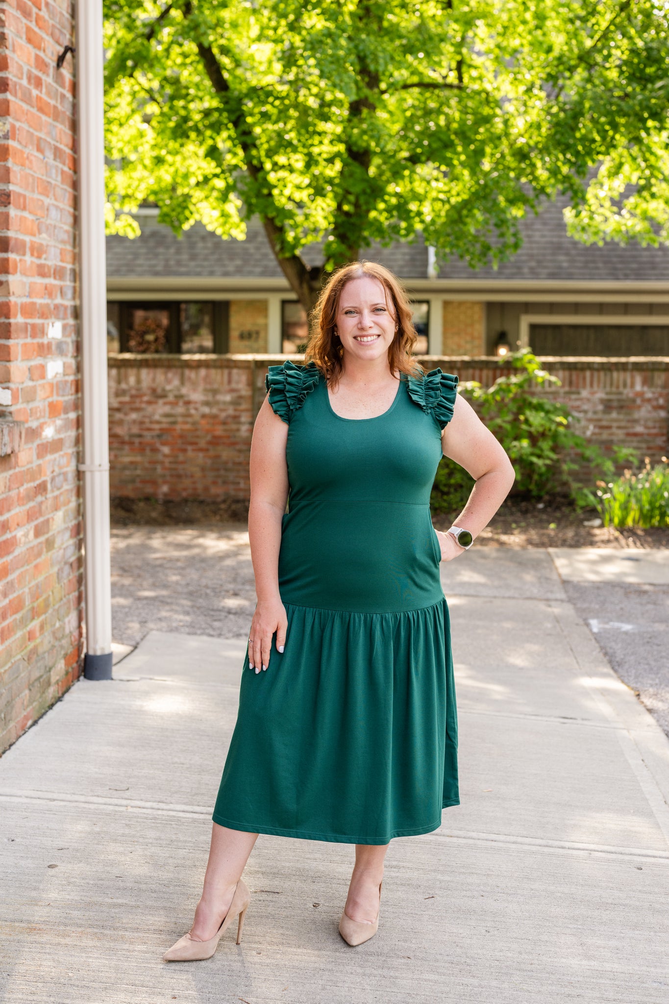 Elevate your style with the Penelope Dress, featuring a charming 3-tiered design with cascading ruffle shoulders and a flattering drop waist. This versatile A-line dress pairs beautifully with sandals or heels for any occasion.