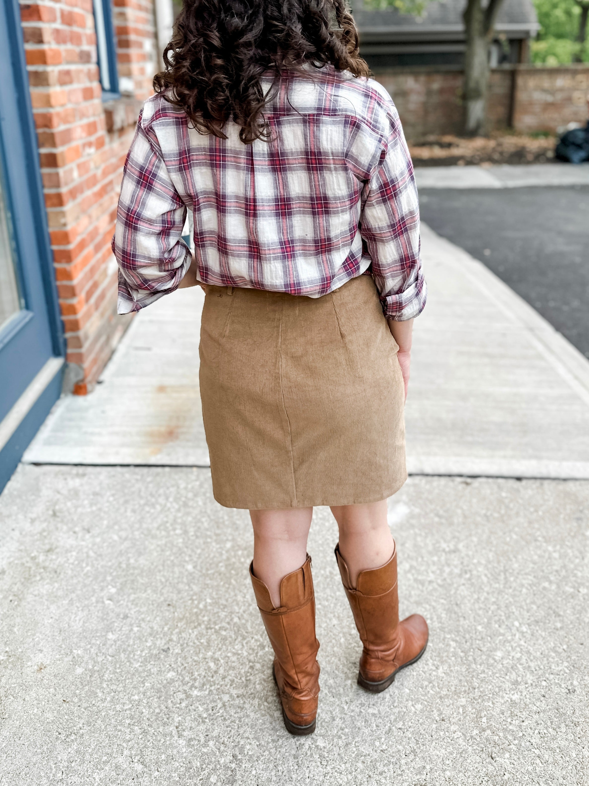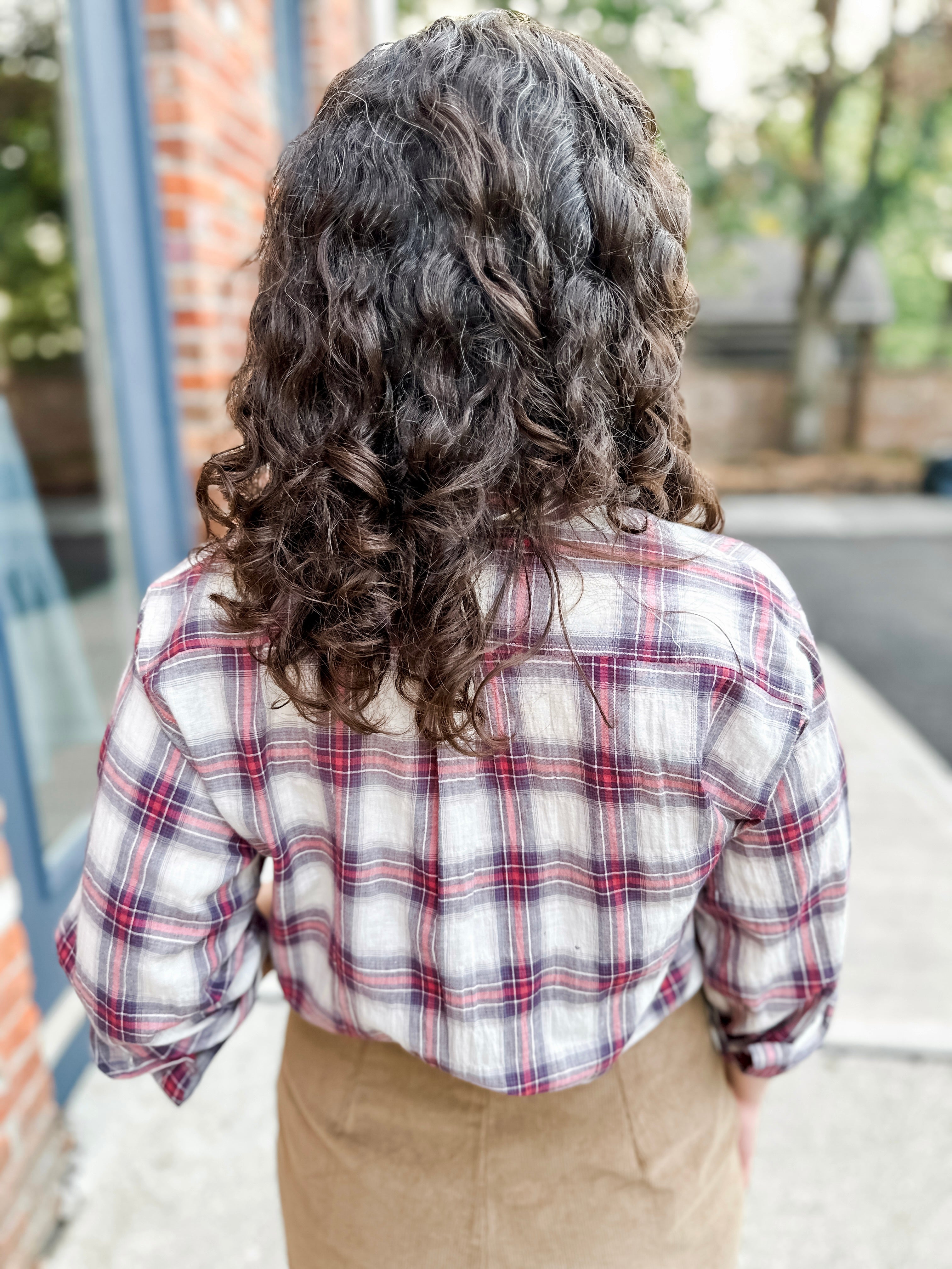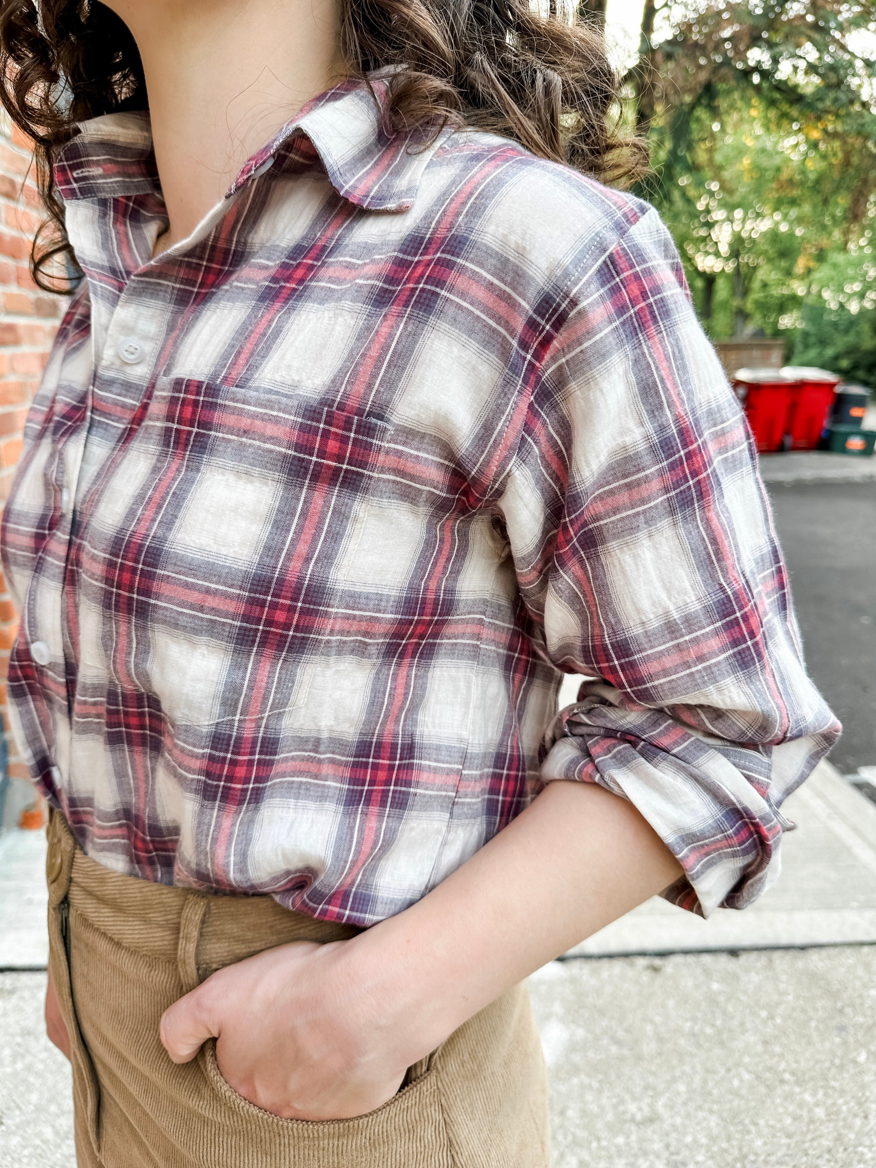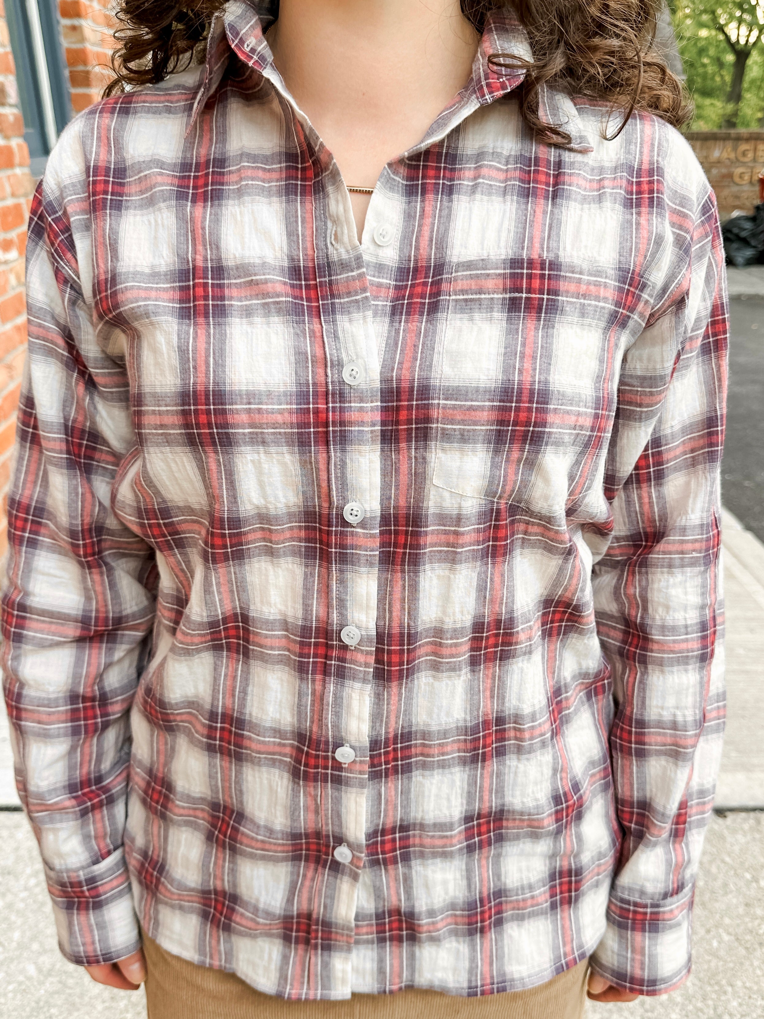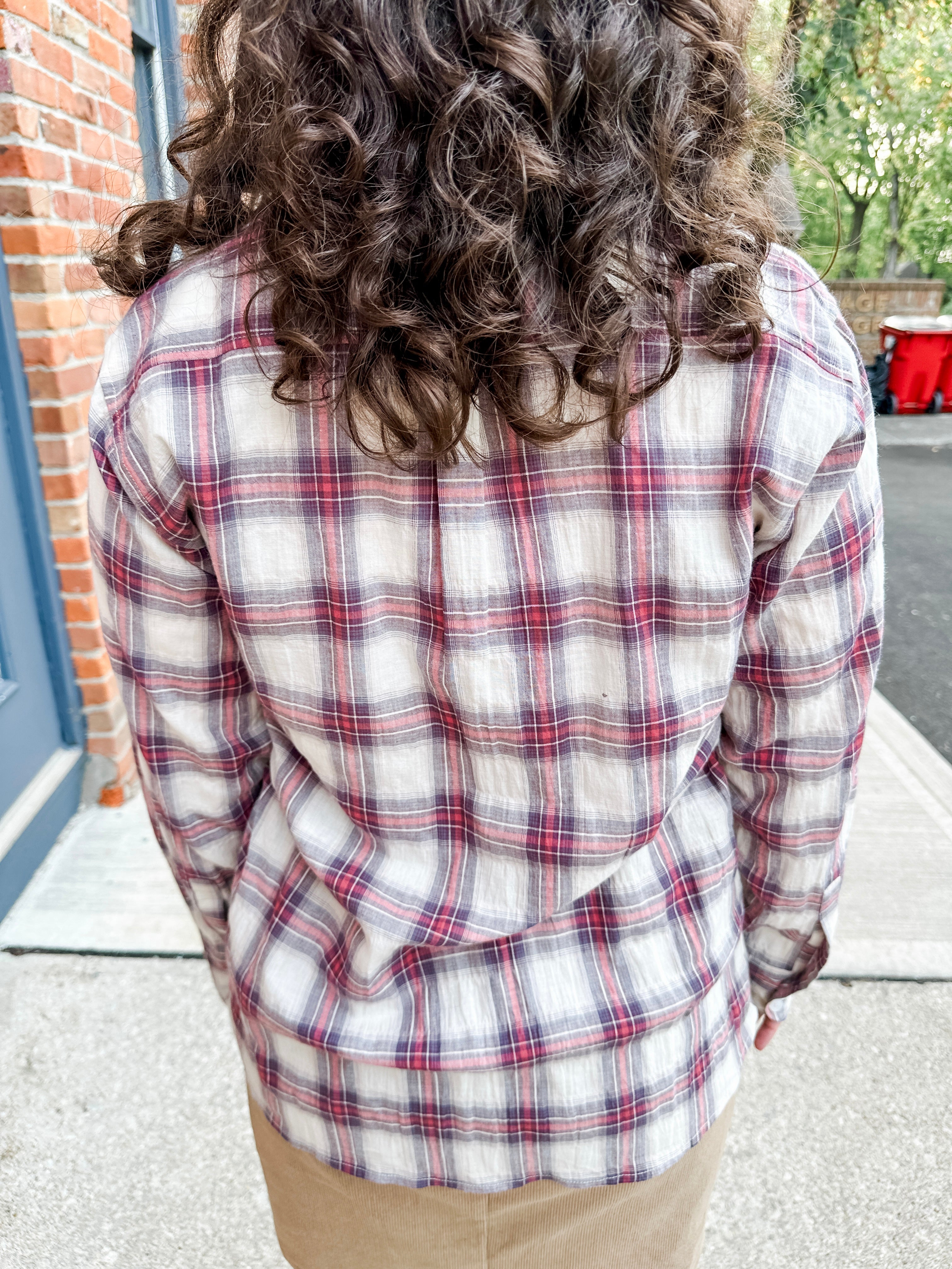 Make a statement with this classic Plaid Button-Up Shirt. Featuring timeless plaid patterns and a relaxed fit, this versatile piece is perfect for layering or wearing on its own.