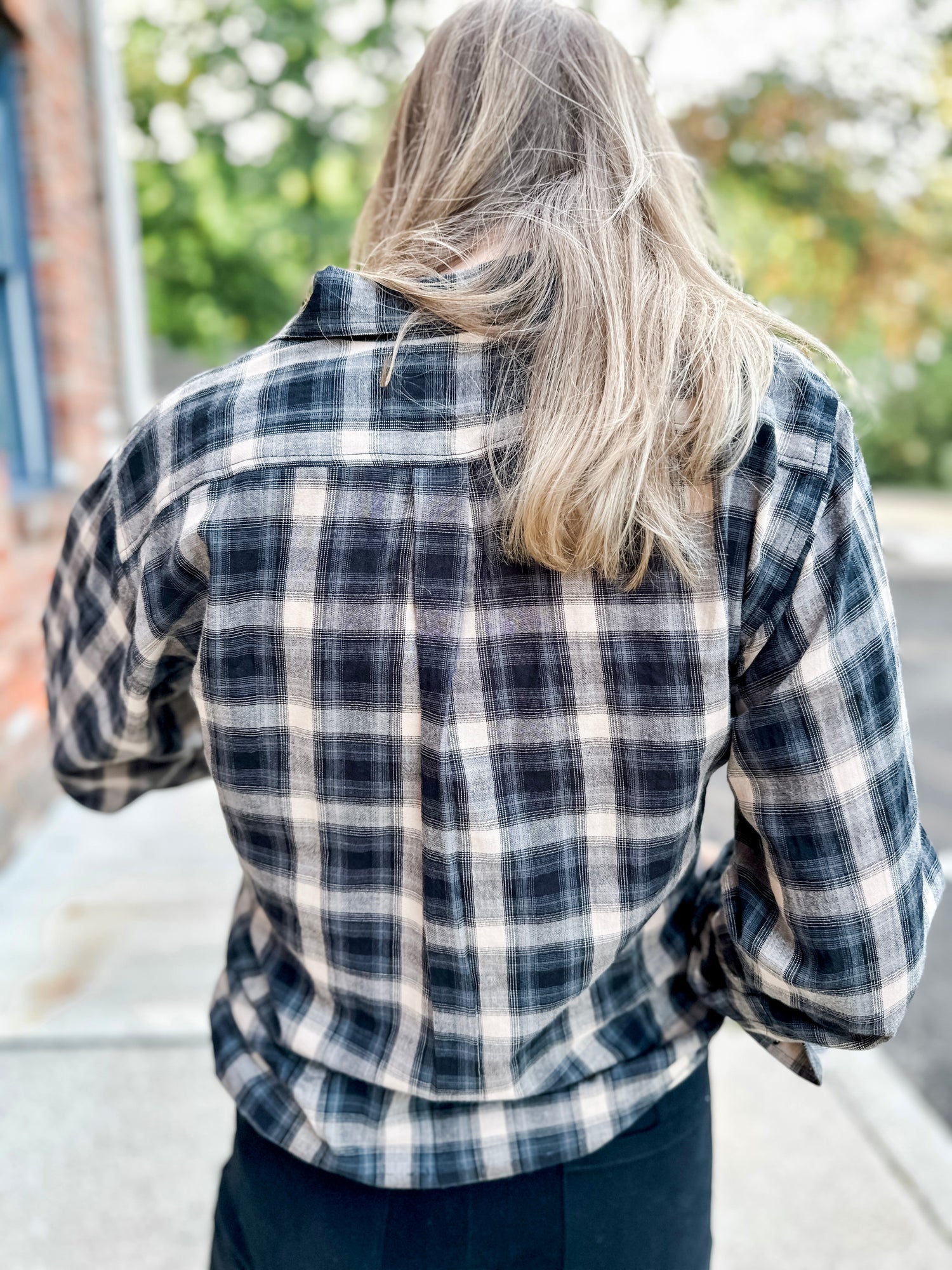 - Models wearing typical size in a button-front shirt: Red/Gray plaid worn by Elisabeth size S | Purple & Gray + Hot Pink & Black plaid worn by Amy size S | Black/Charcoal & Cream Plaid worn by Angie size M |