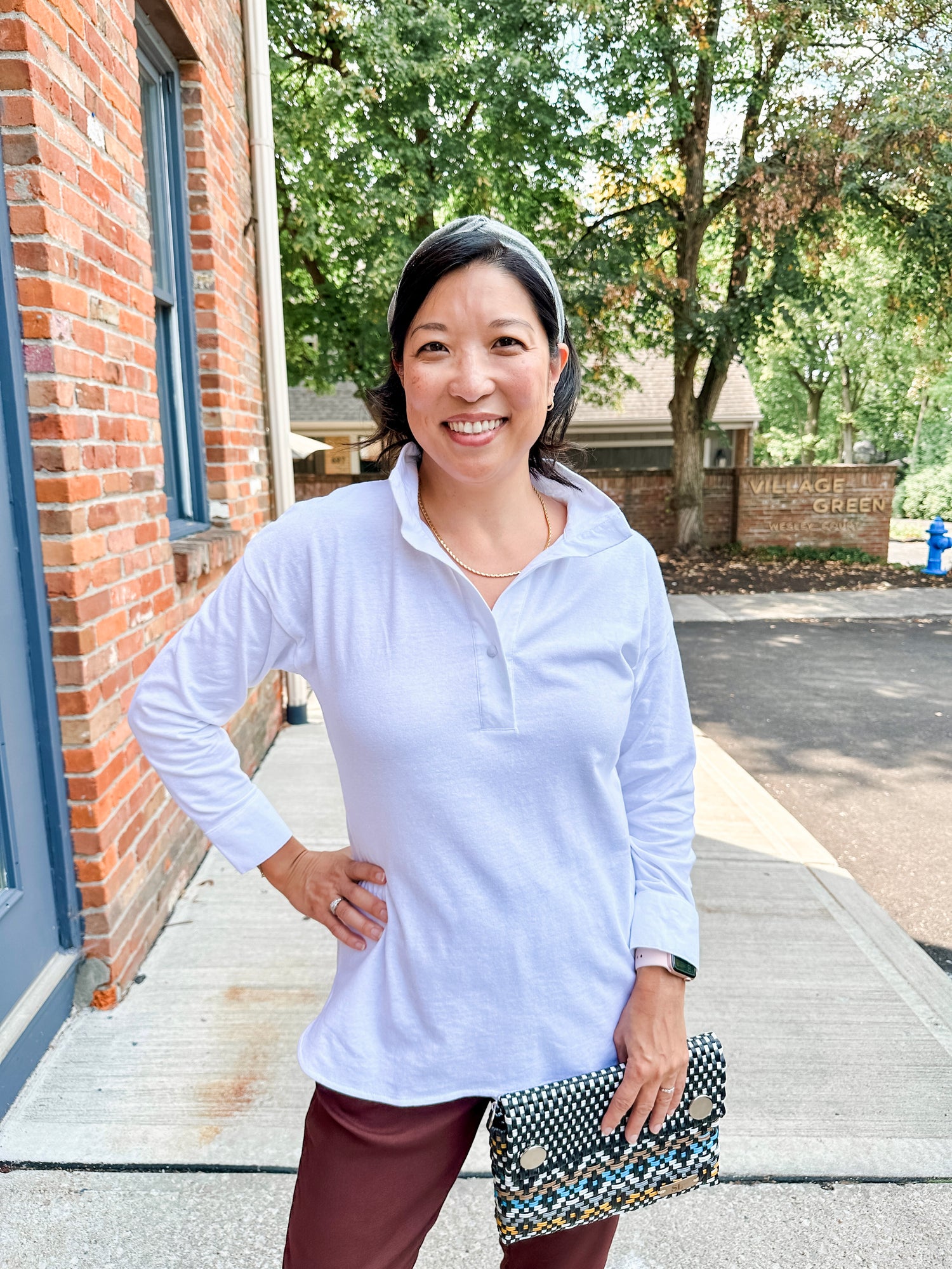 Add sophistication with this stand collared shirt. Style it with denim and sneakers for playful weekend wear, peek-a-boo under one of our NEW button front cardigans with boots when the temps turn cooler, or with our every day pant, mini skirt and ballet flats for a little feminine touch.