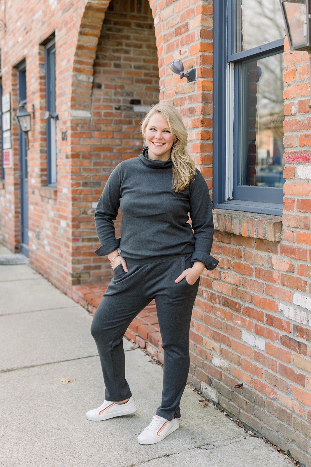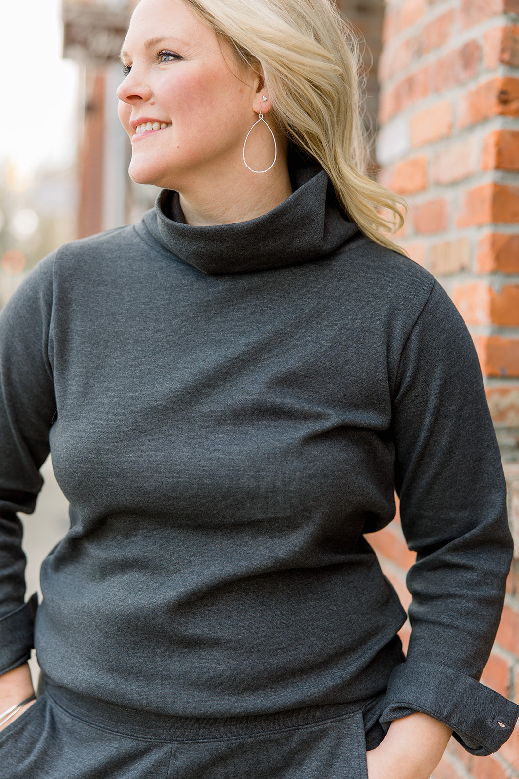 Ponte II Long Sleeve Mock Neck with Cuff and Pant - Charcoal