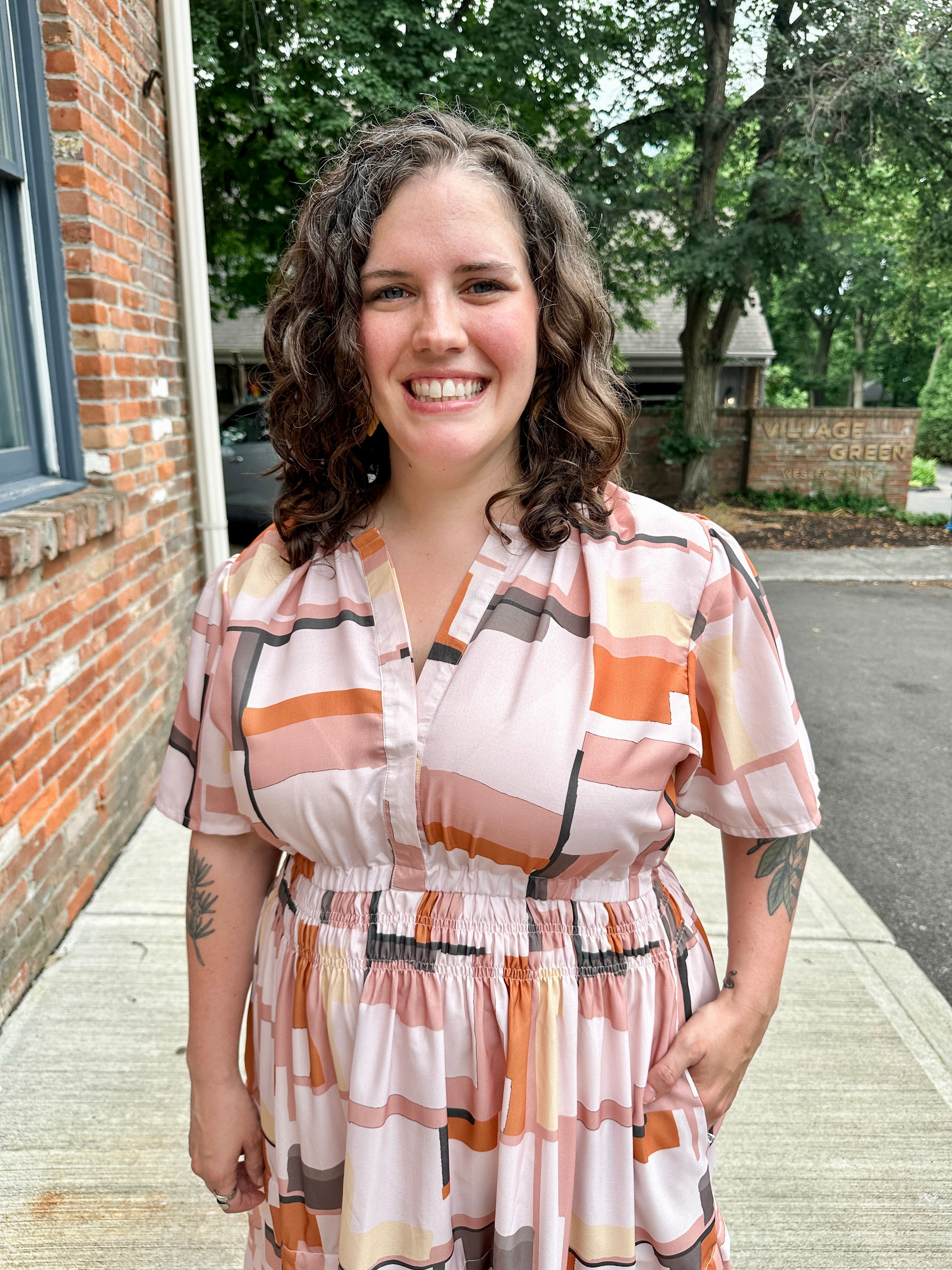 I love this style and have purchased it in various fabrics. This is my favorite! The fabric is so soft and comfortable, the fit is flattering and easy to move in, I love the details like the smocked waist and finished tiers - it's truly the perfect dress!