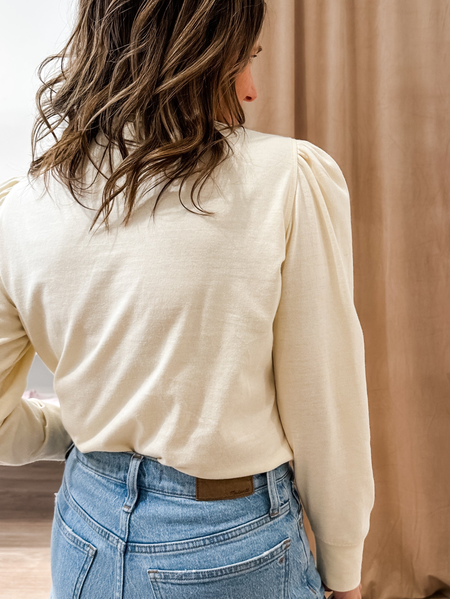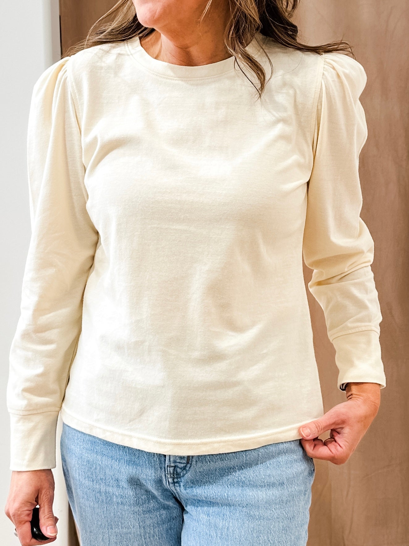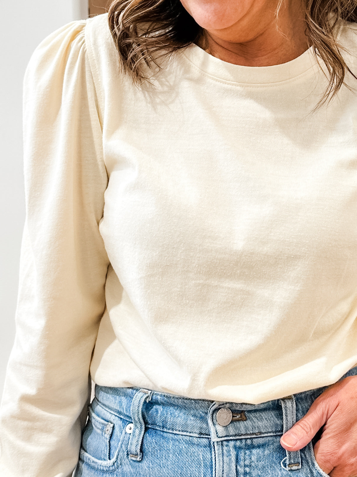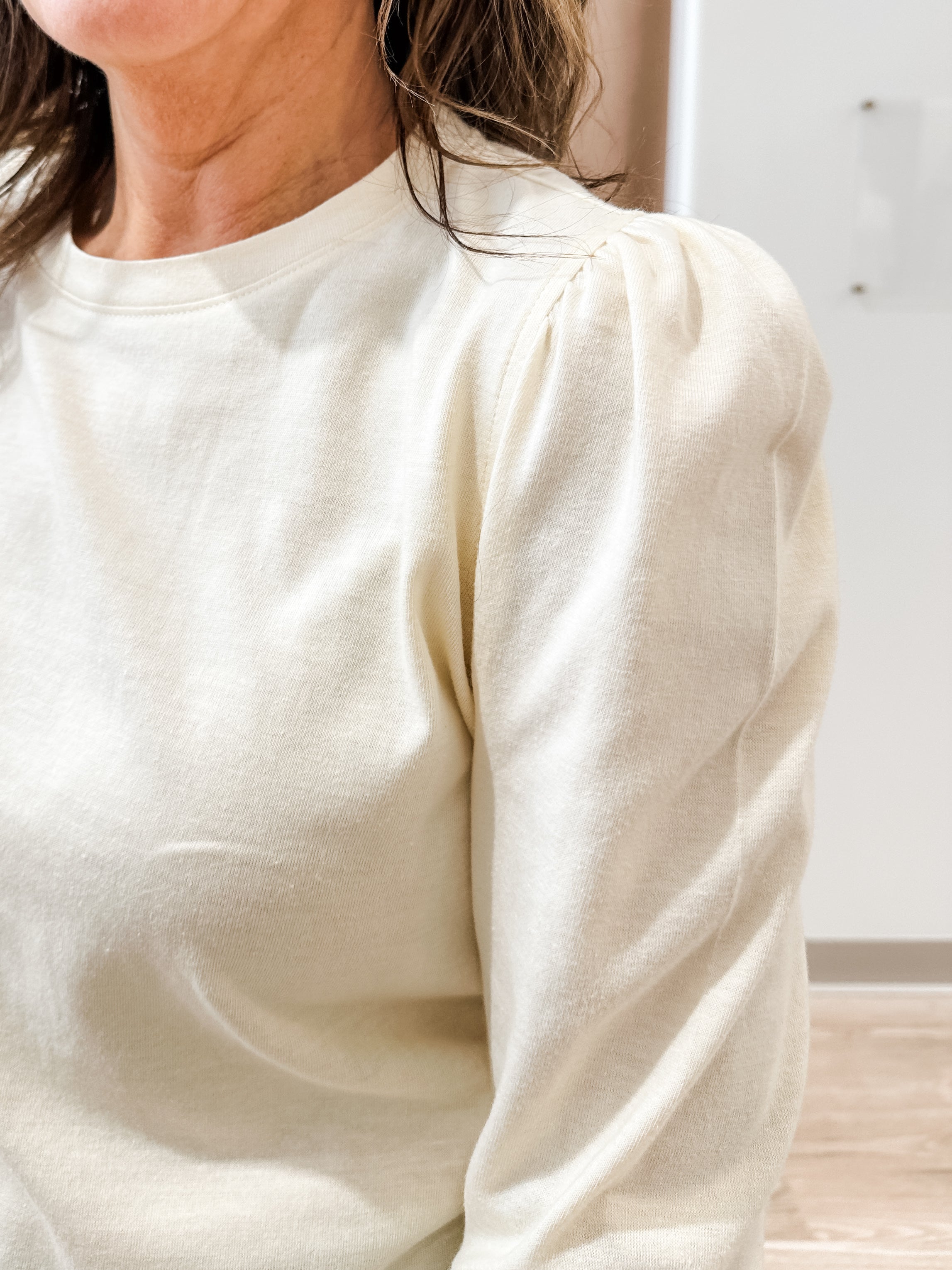 Your new go-to essential. This puff sleeve knit top features a classic crewneck and versatile length—perfect for tucking or leaving loose.