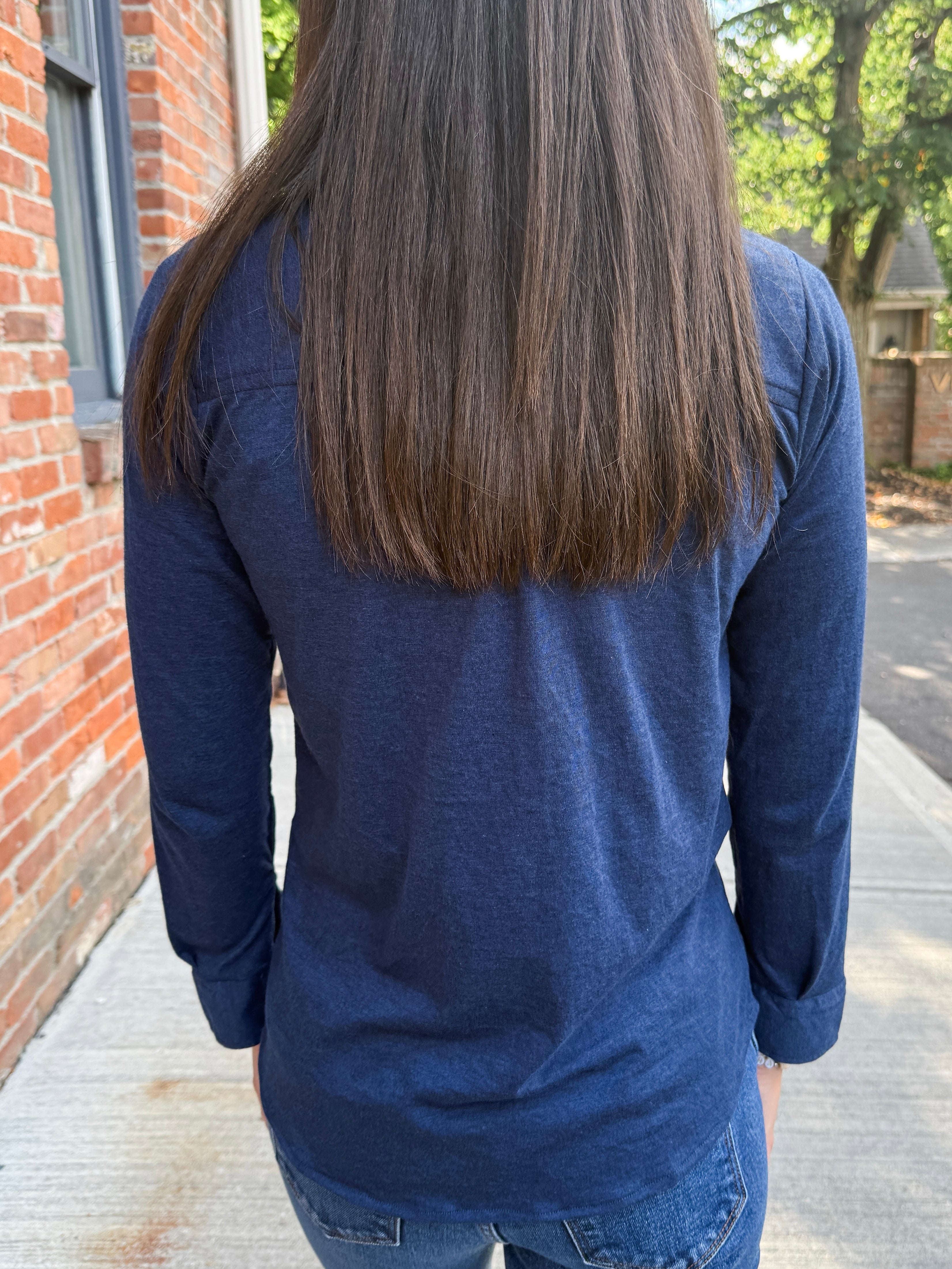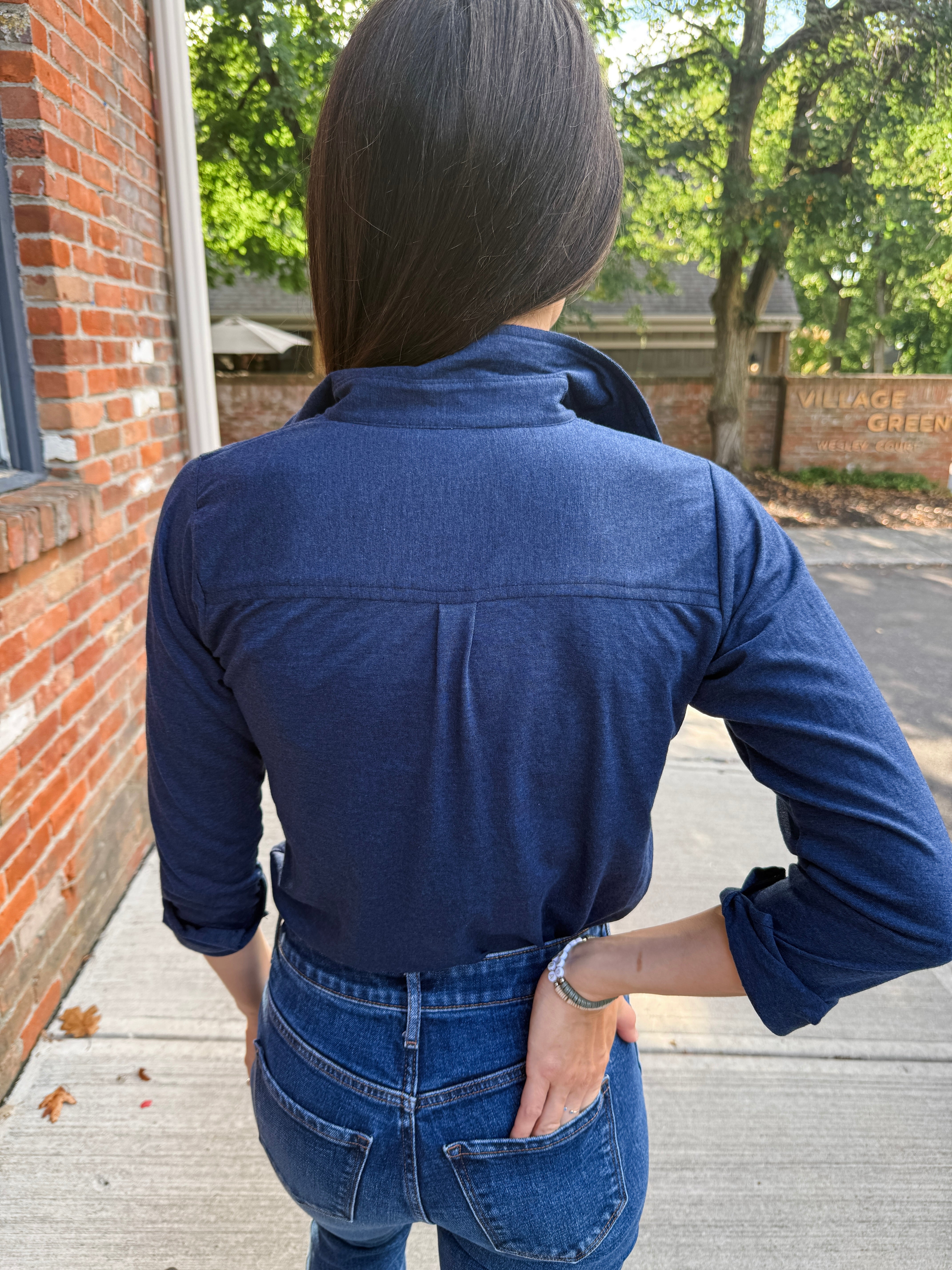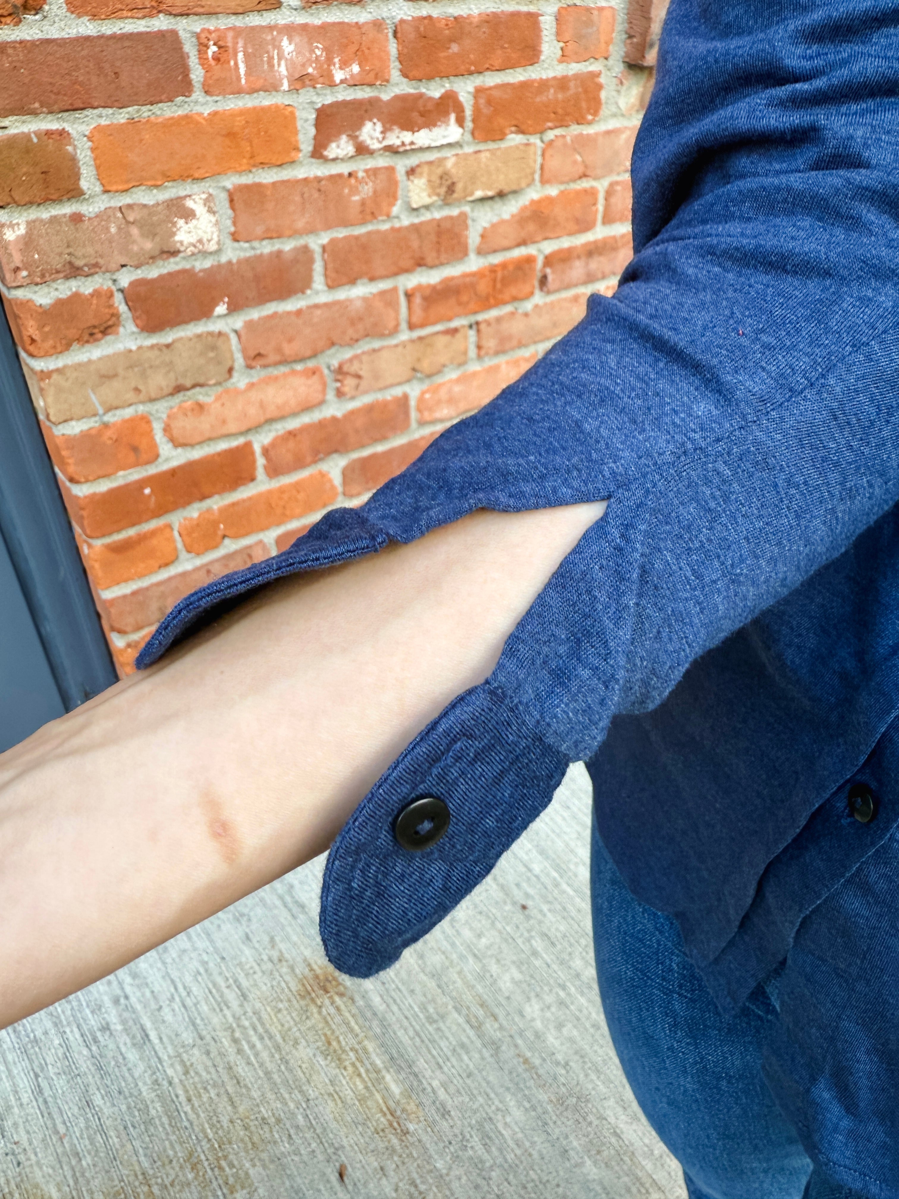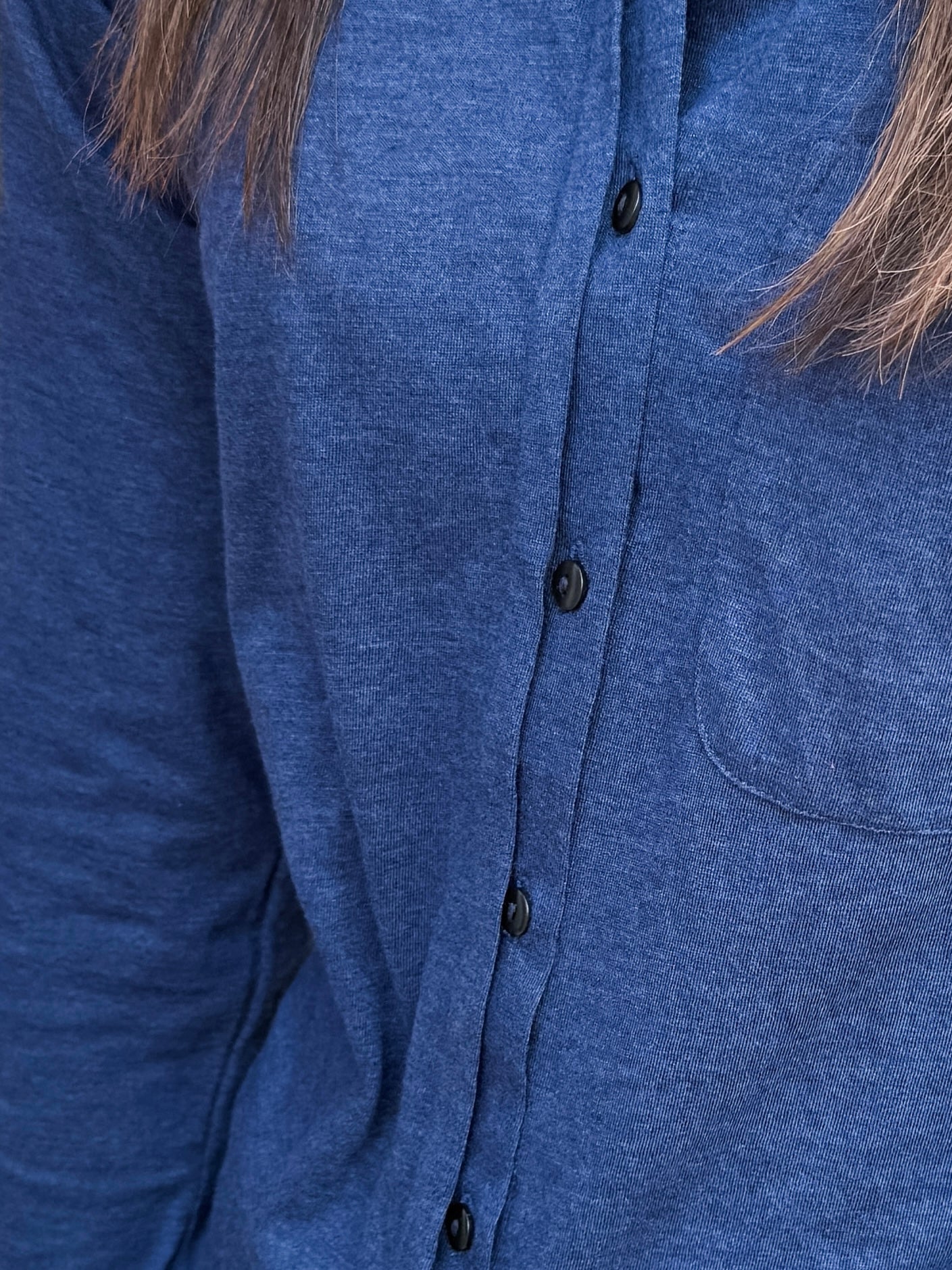 Classic button-up shirt crafted from 100% cotton jersey knit surplus fabric. Features a timeless design with modern comfort.