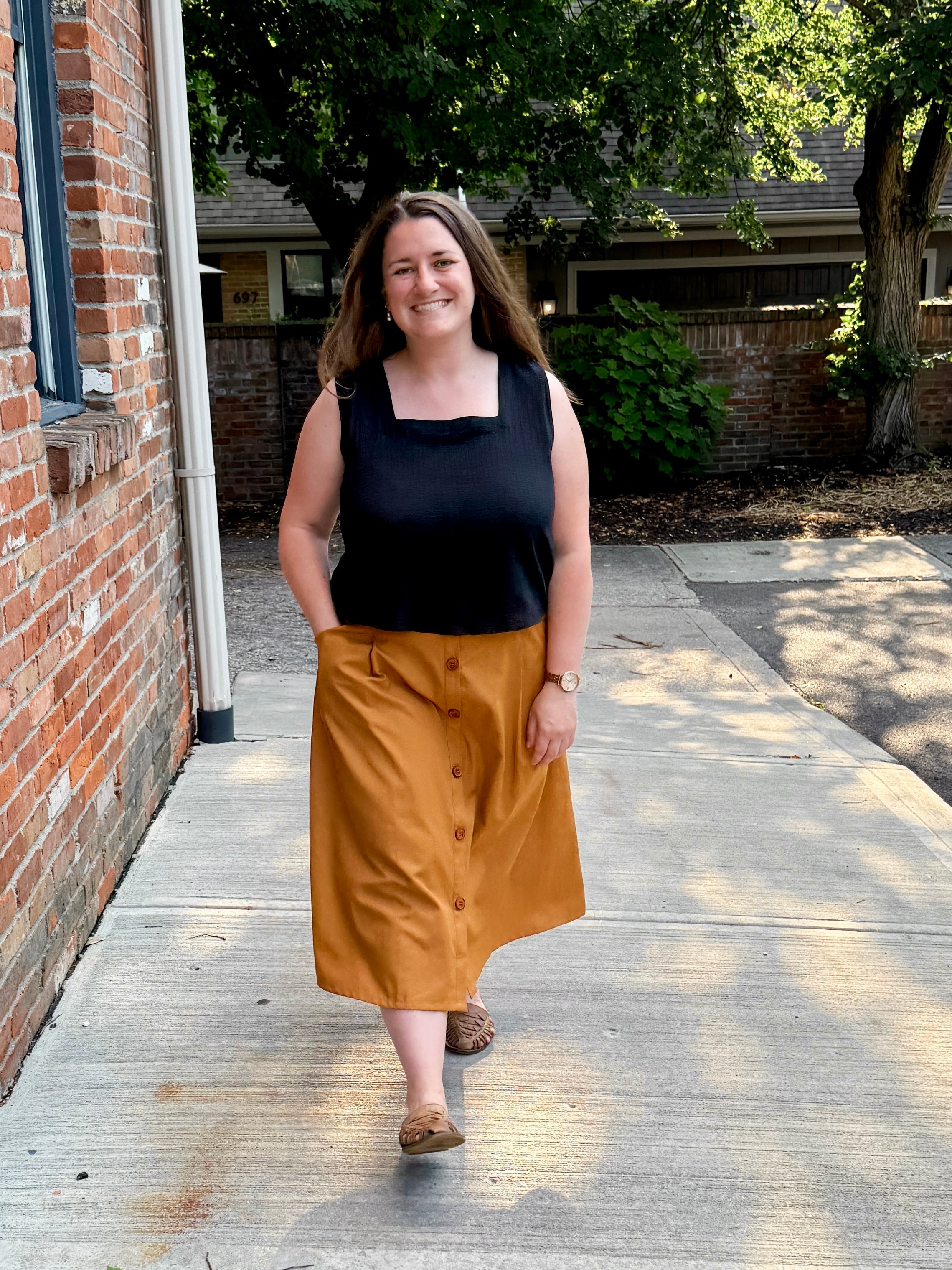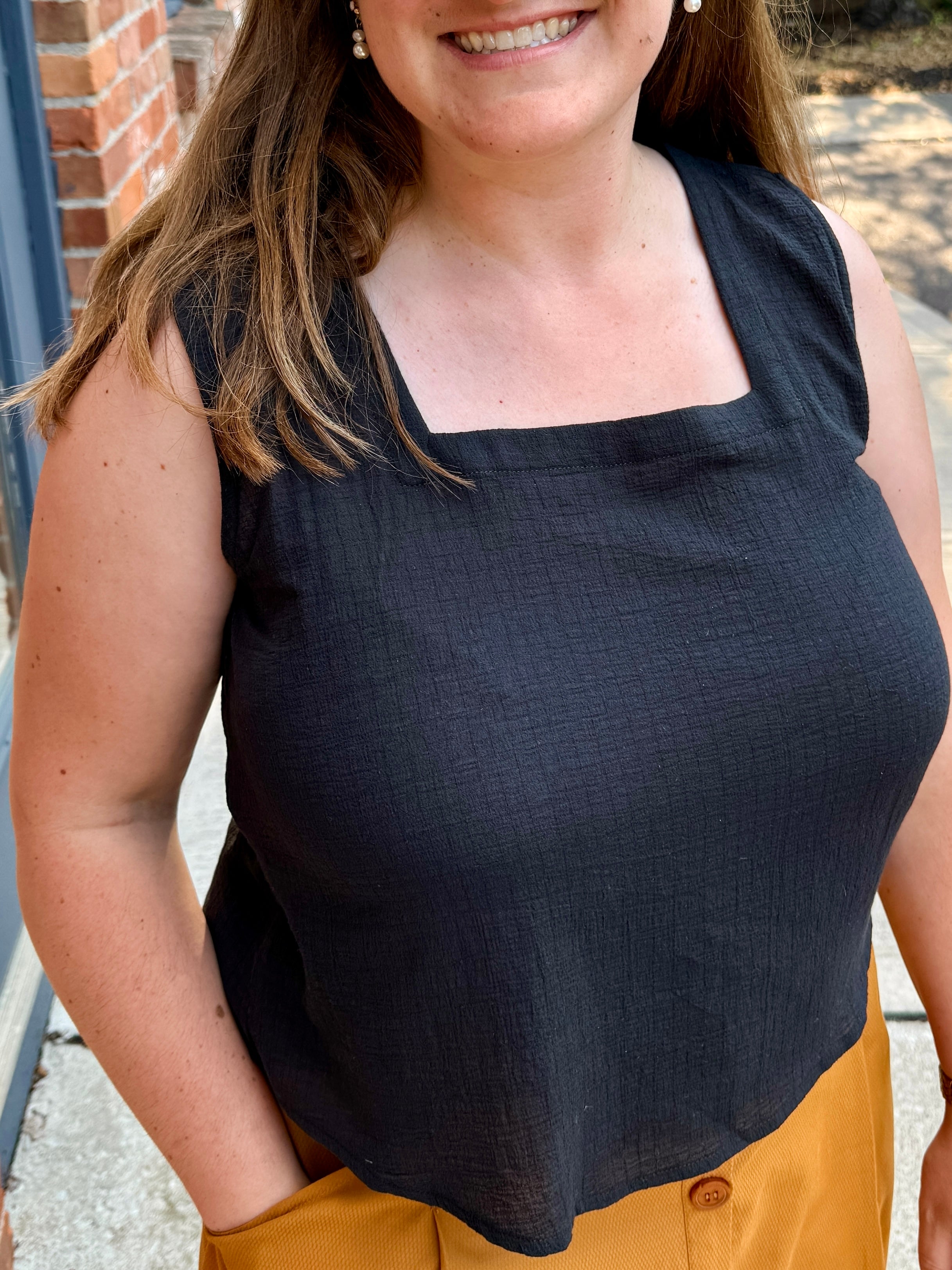 Effortlessly chic sleeveless square neck top in lightweight crinkle cotton gauze.