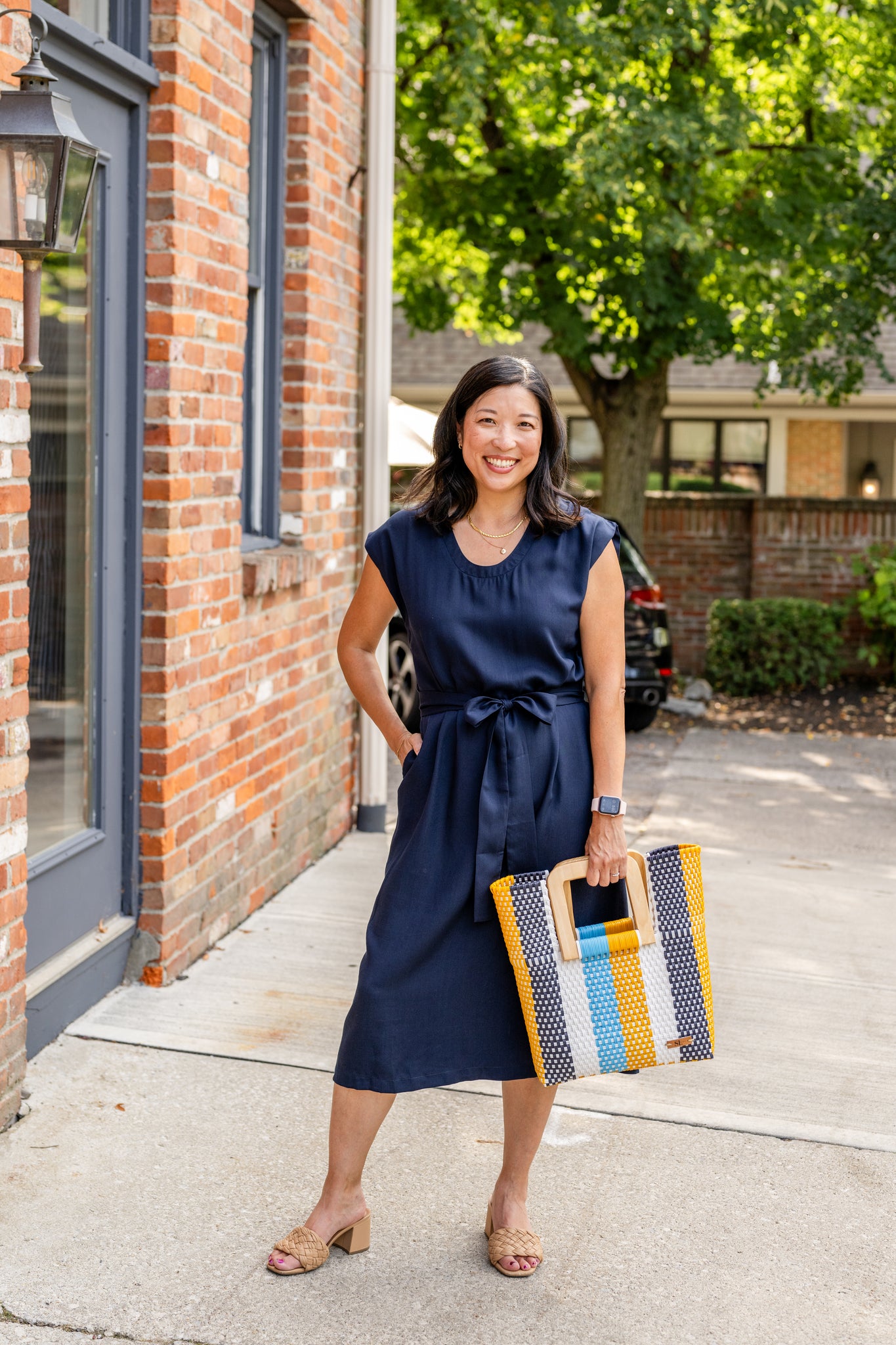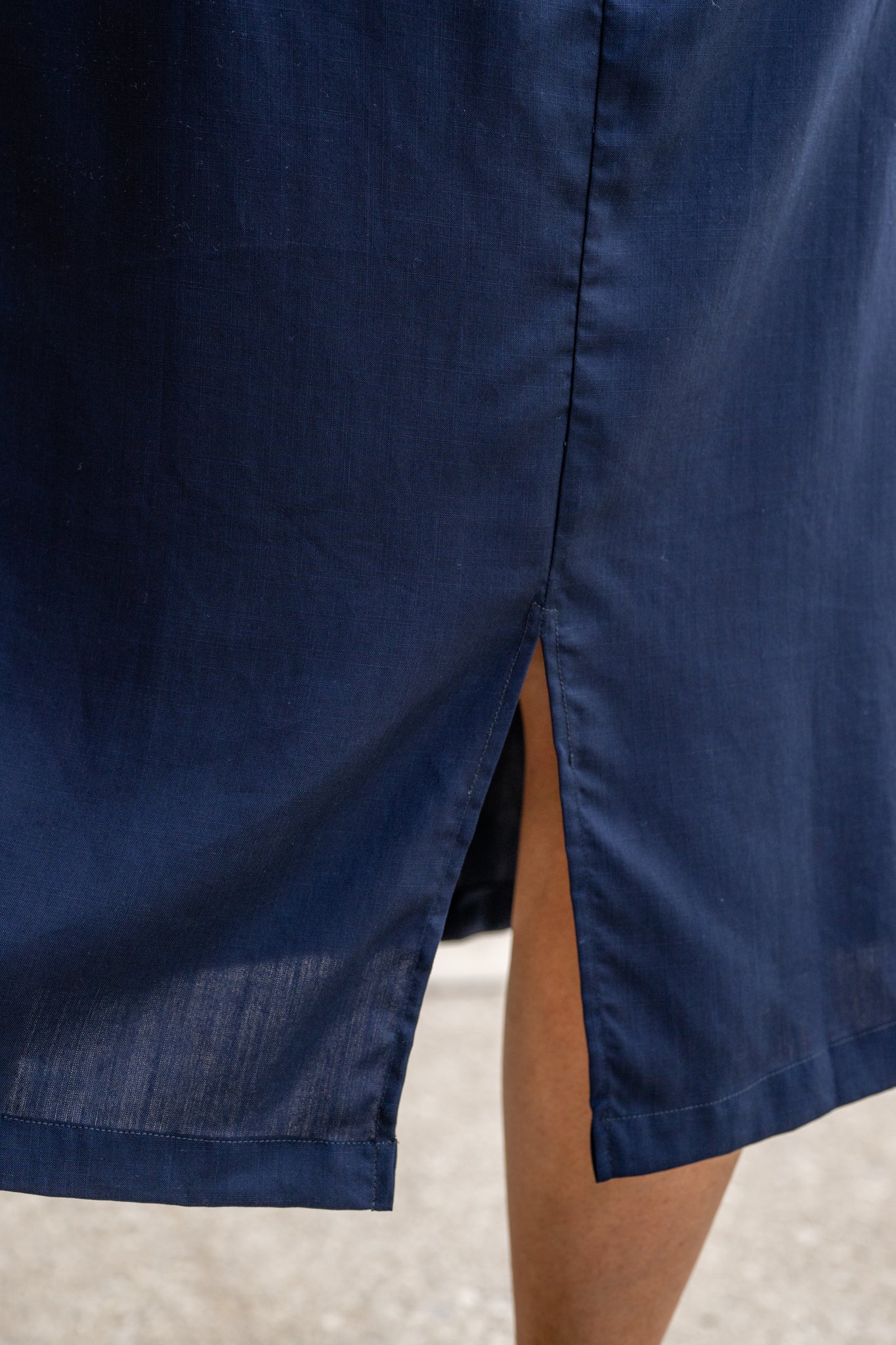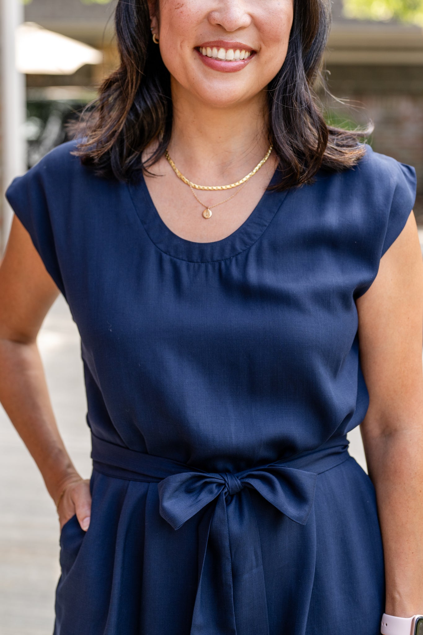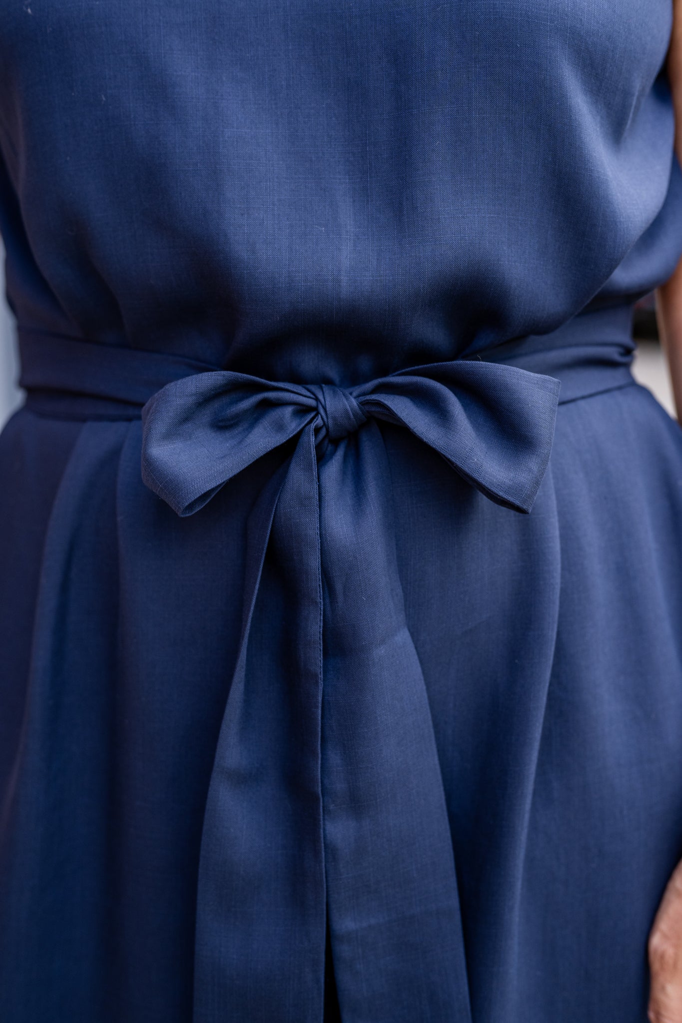 The Sophie Dress effortlessly transitions from season to season and occasion to occasion. The timeless scoop neckline and flattering A-line silhouette work beautifully on their own or layered with jackets and cardigans. Crafted from surplus 100% woven viscose with thoughtful details like hidden side pockets, a removable tie for styling options, and finished French seams. The midi length and back slit ensure comfort whether you're at the office, running errands, or enjoying dinner out.