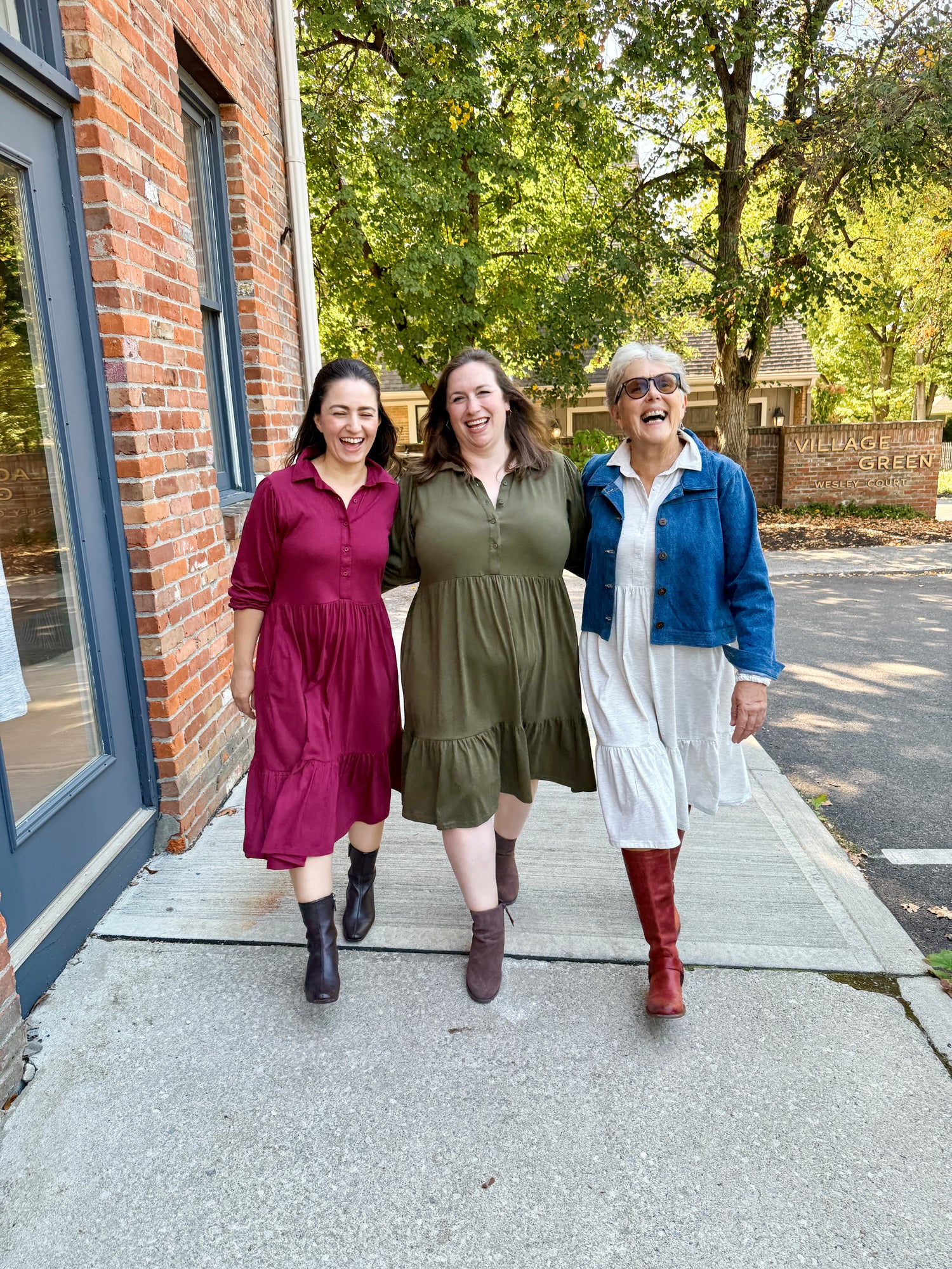 - Models: Oatmeal worn by Donna size S & Sally size M | Cranberry worn by Mary Ellen size L & Mariana size S | Olive worn by Rachel size 2X & Elisabeth size S