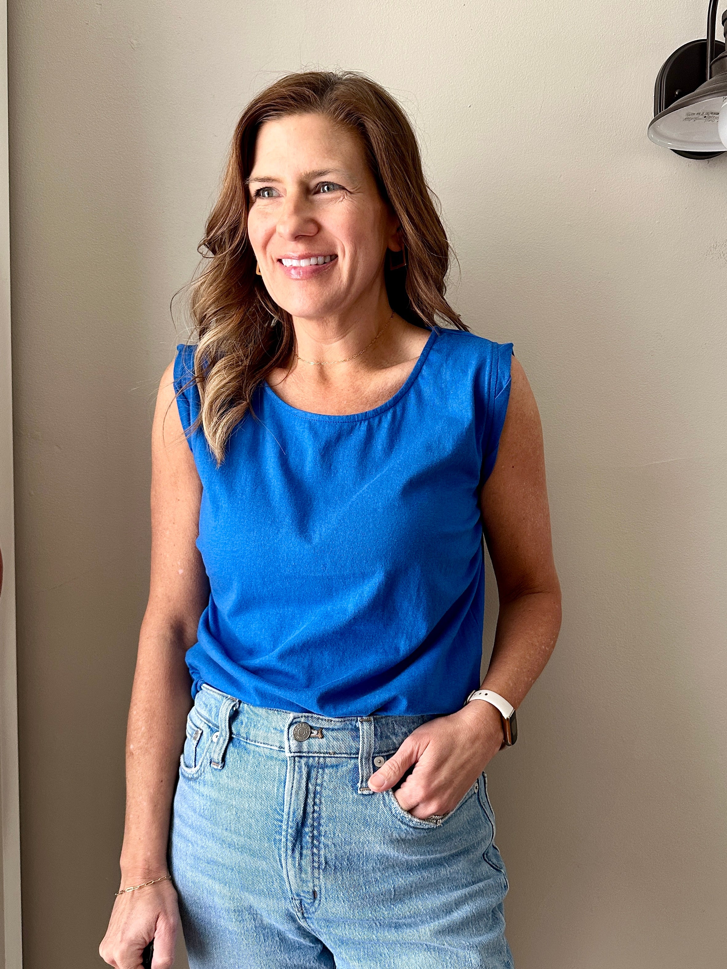Erin Cute and comfy! The sleeve adds a fun "twist" to an otherwise classic tank top.