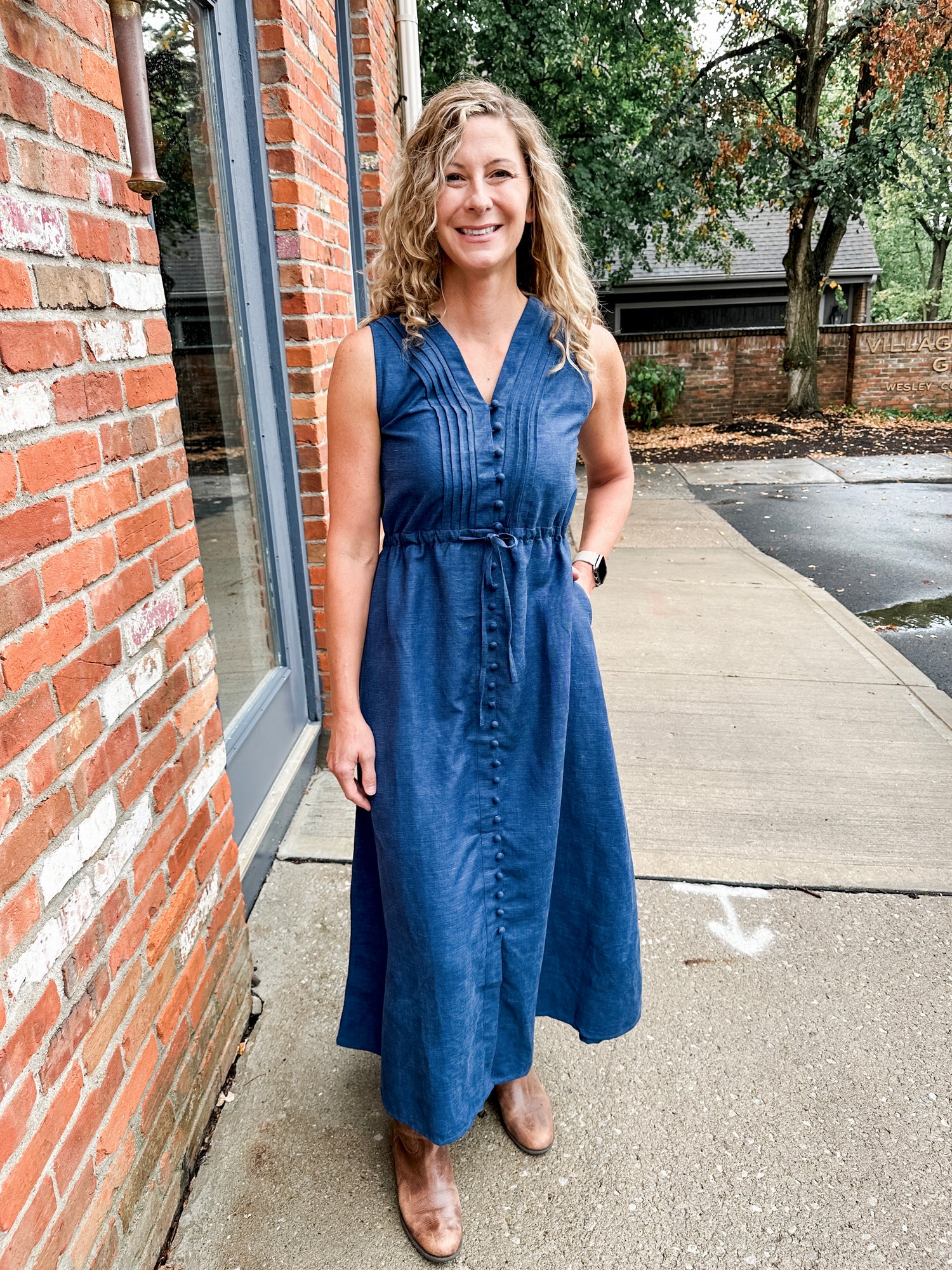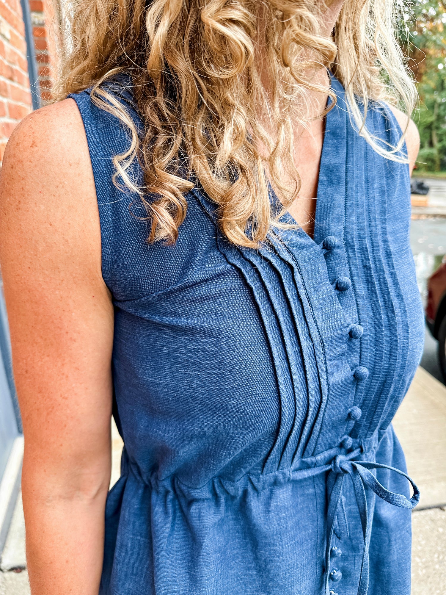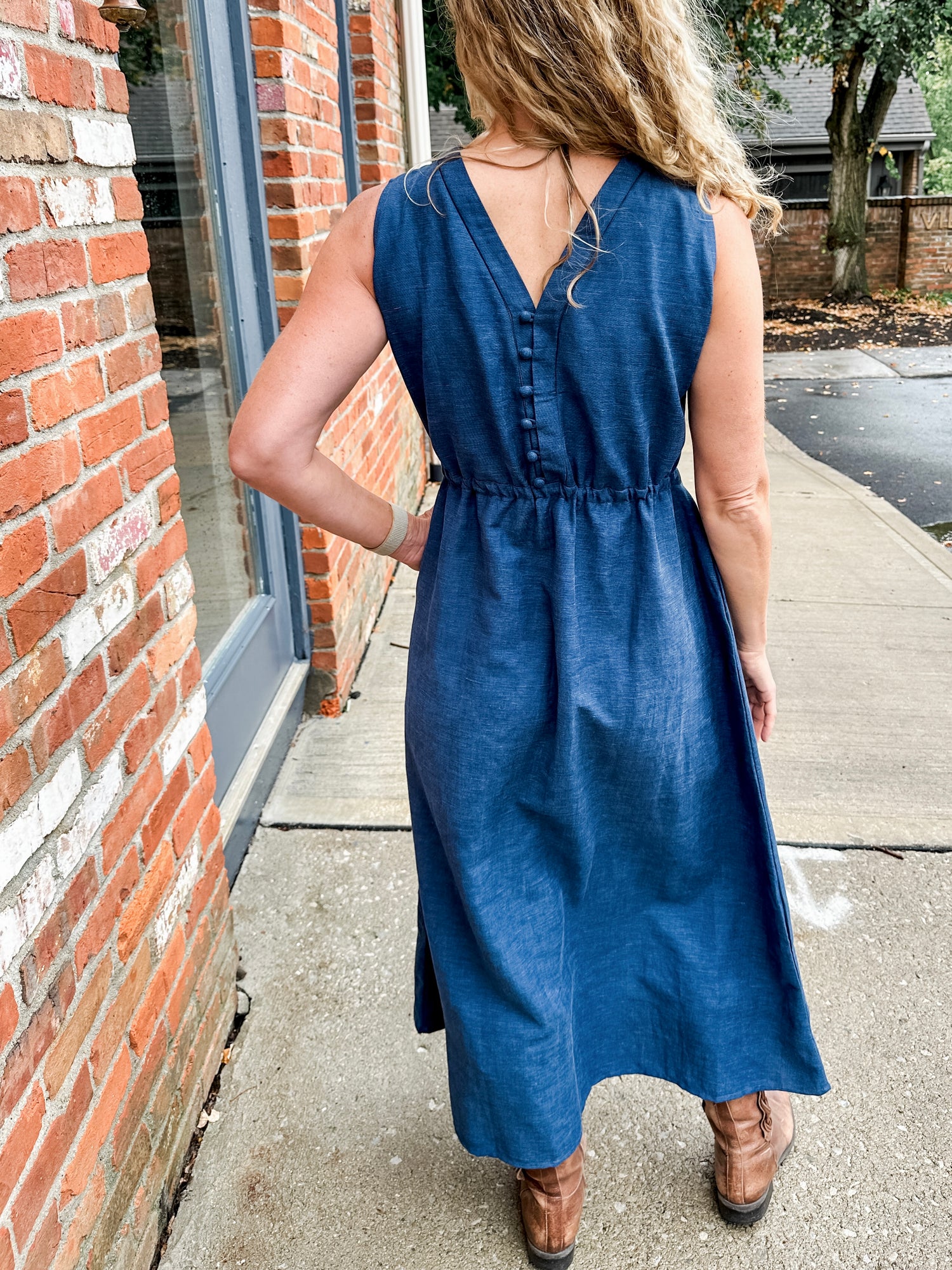 Double V-Neck Button Down Dress creates effortless style with a flattering V-Neck line and charming button detailing a touch of elegance while still keeping breezy and comfortable. Whether styled with a beach hat and sandals, sneakers for a day of errands or heels to a summer wedding, the details will have you turning heads. The fabrics are so unique and one-of-a-kind.