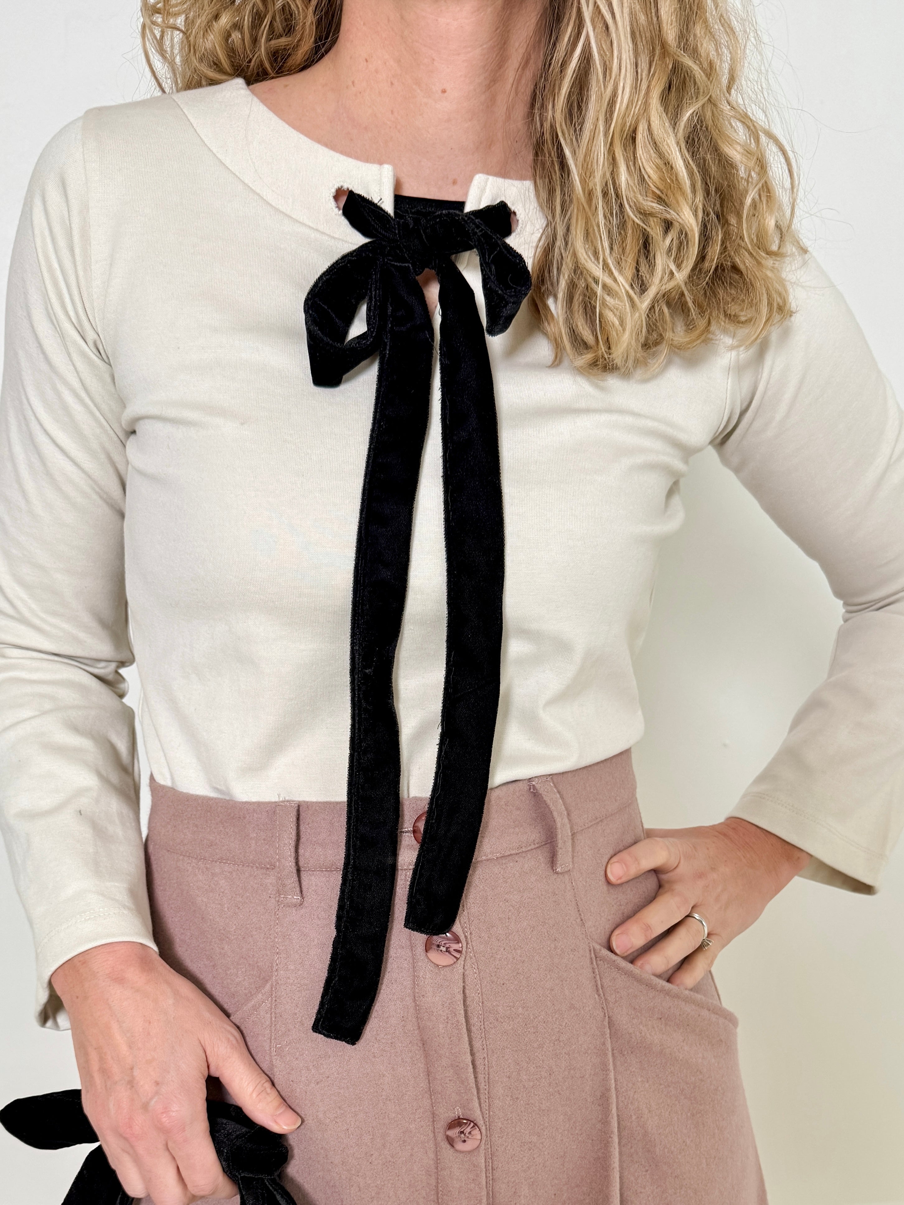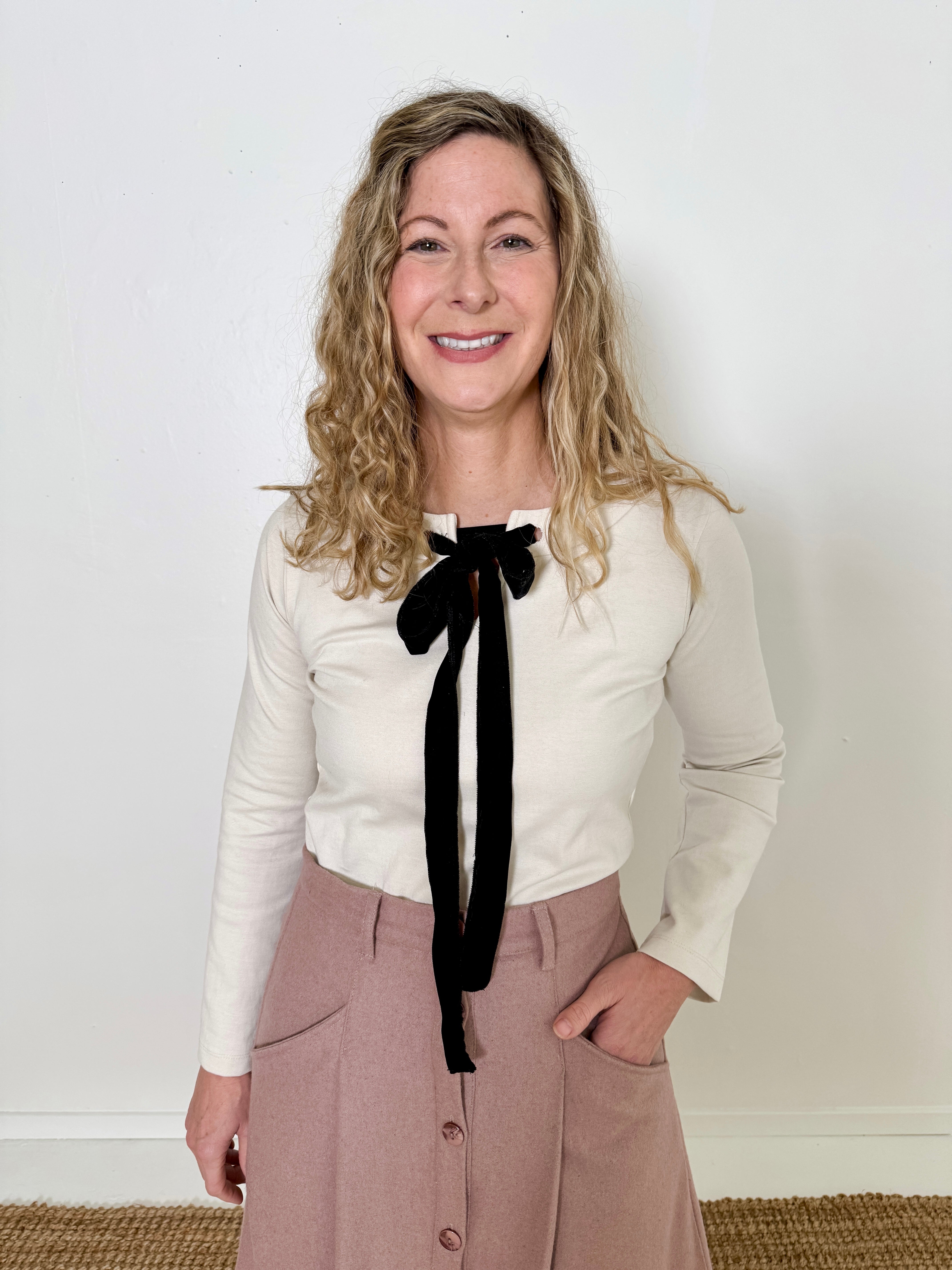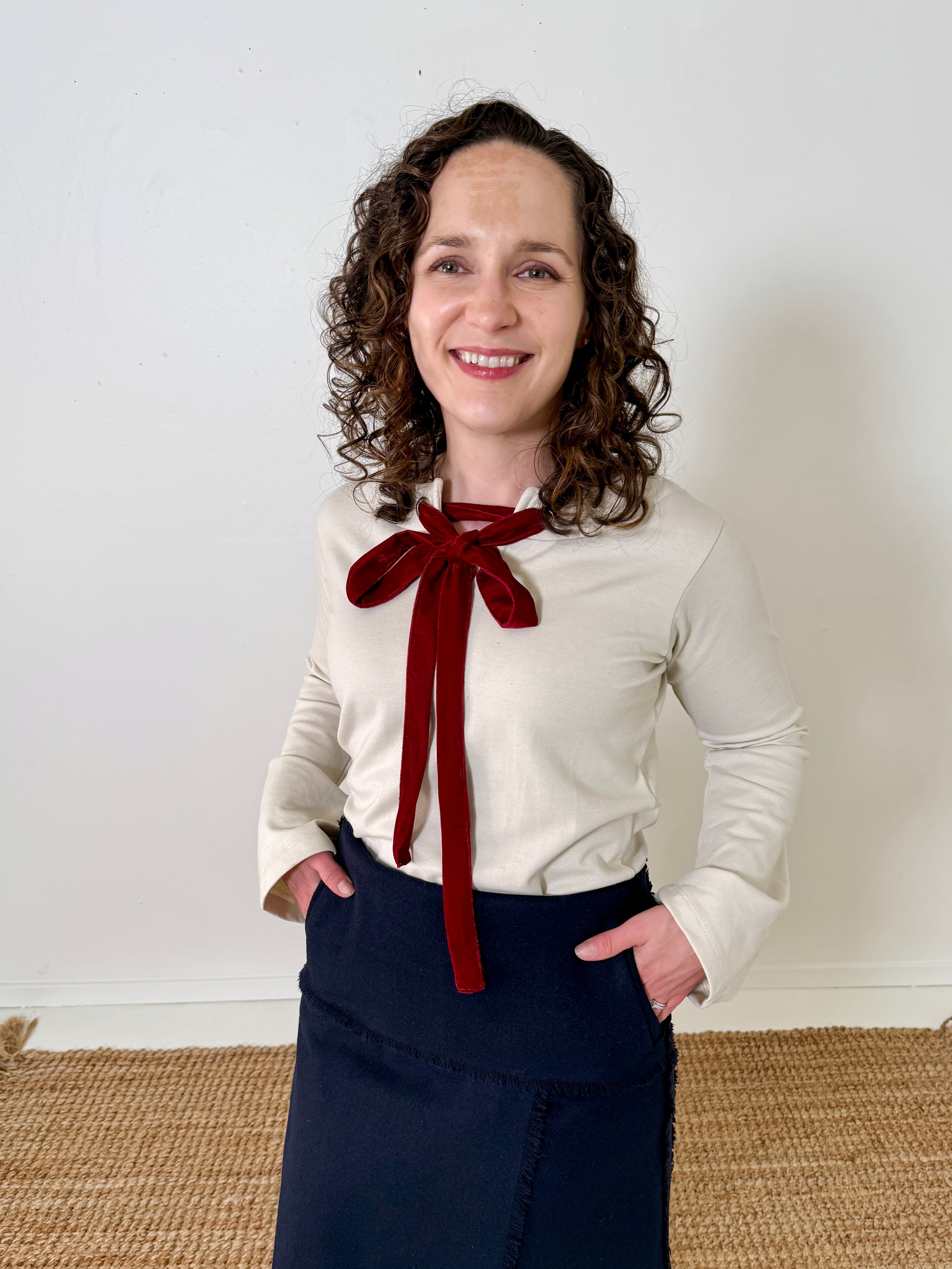 A versatile cotton knit top designed to transition seamlessly from work to weekend to holiday gatherings.