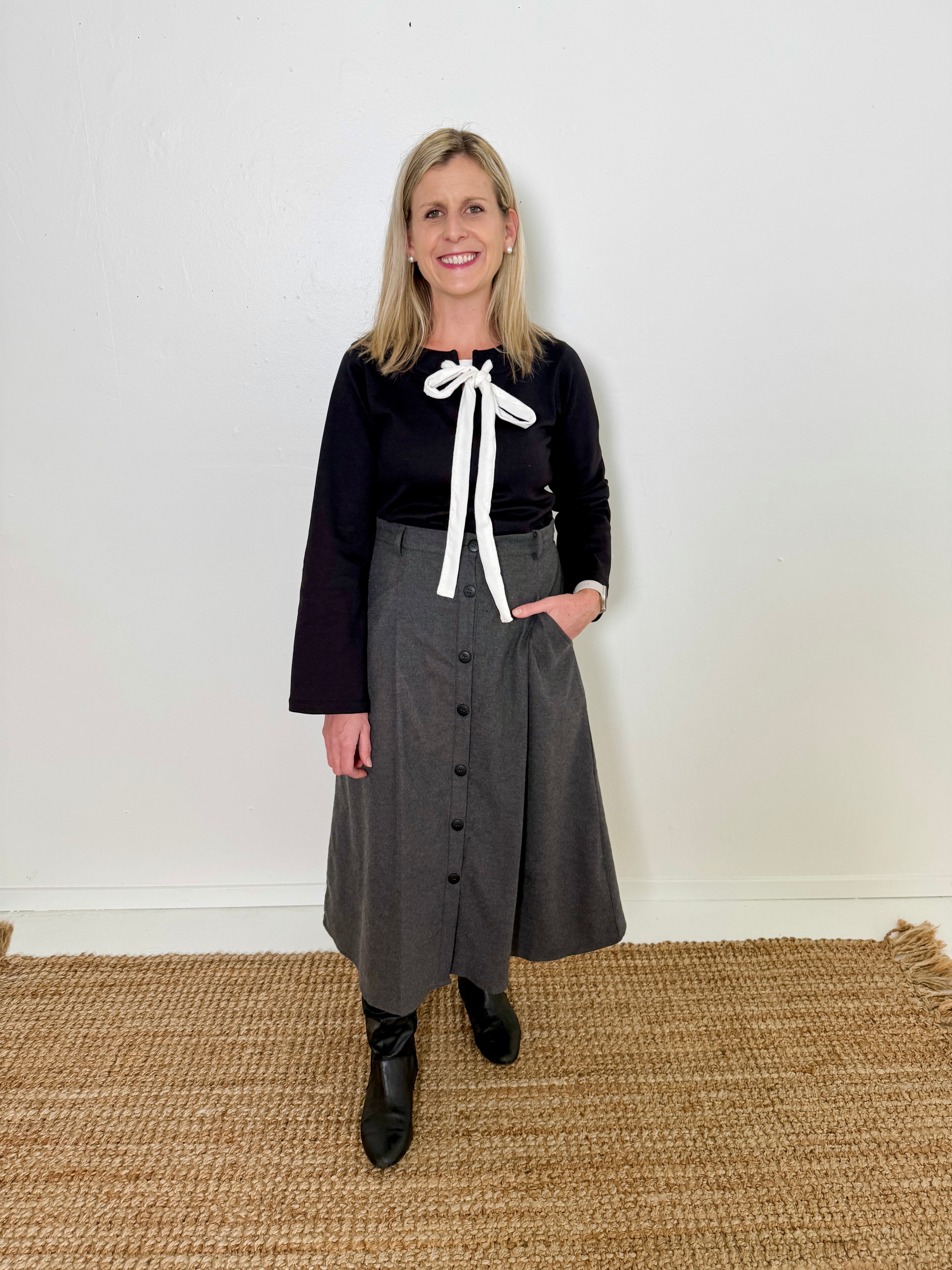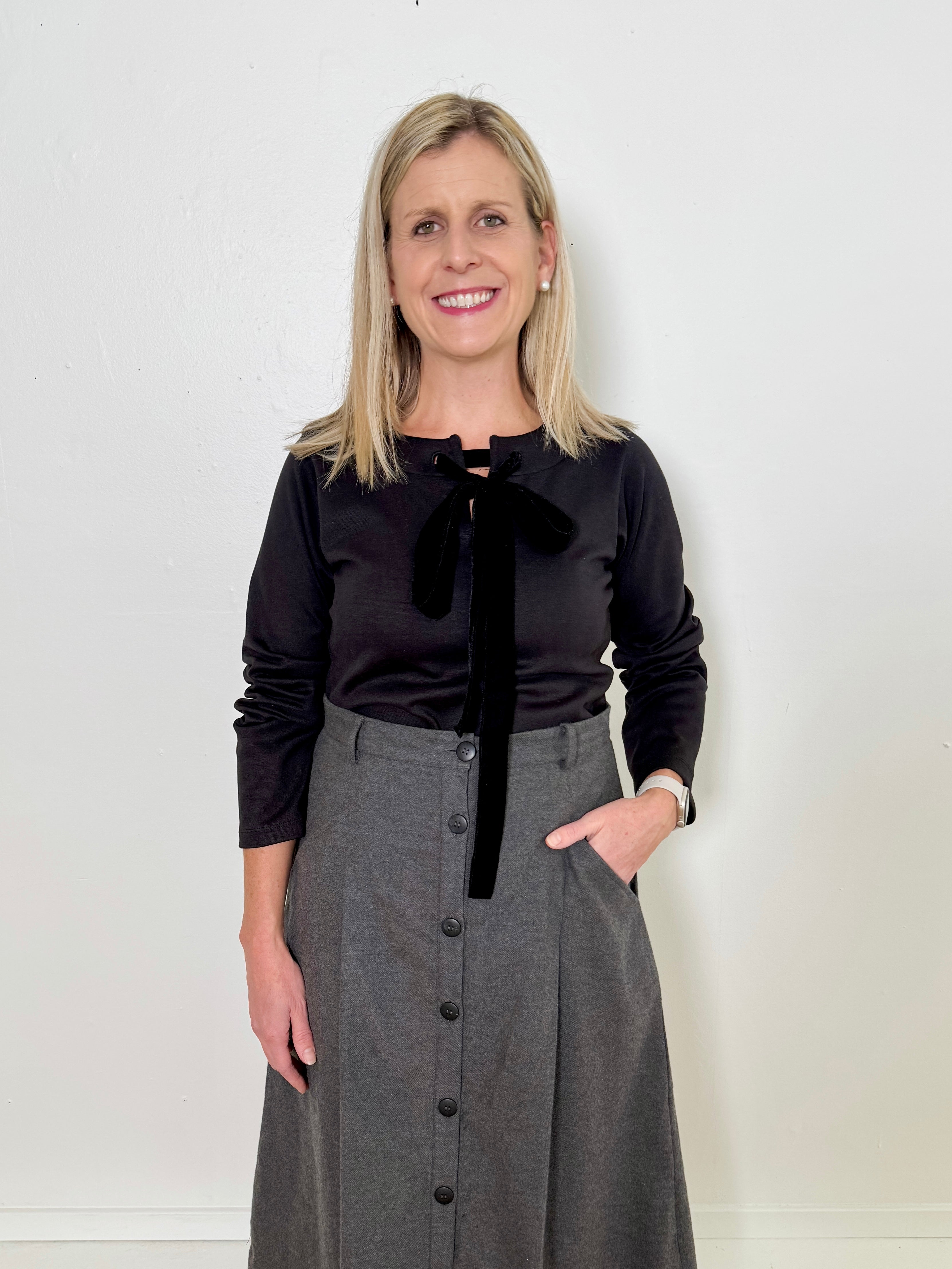 A versatile cotton knit top designed to transition seamlessly from work to weekend to holiday gatherings.